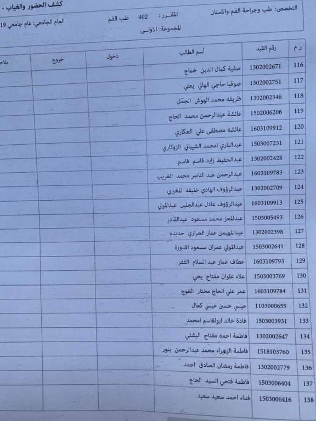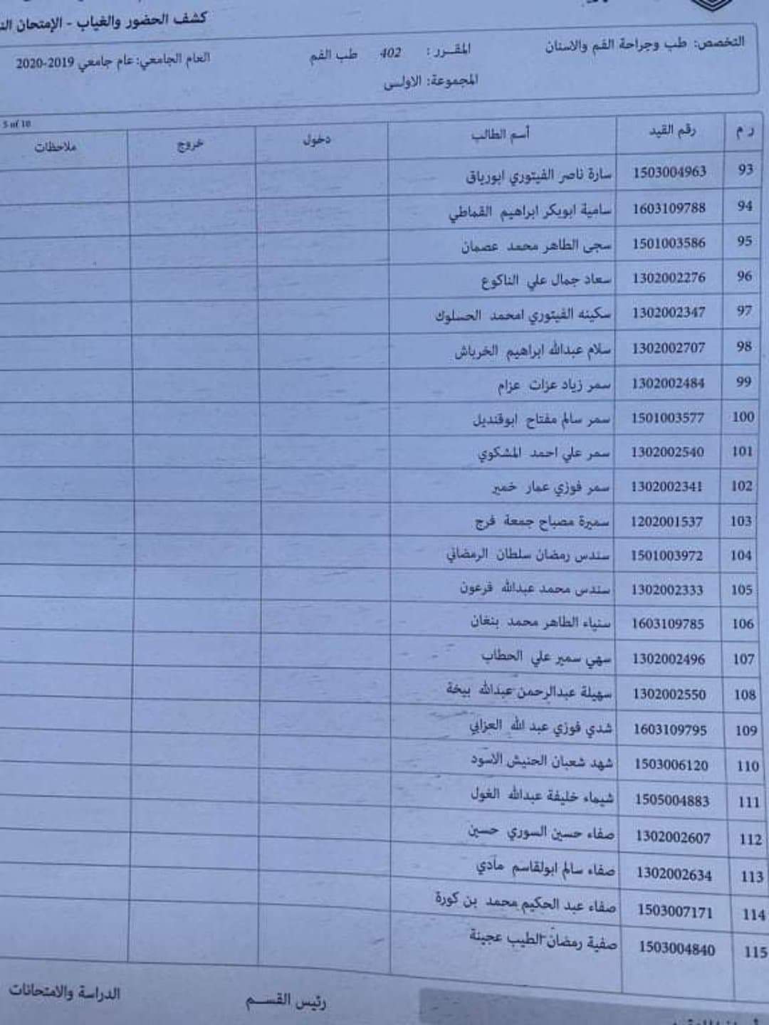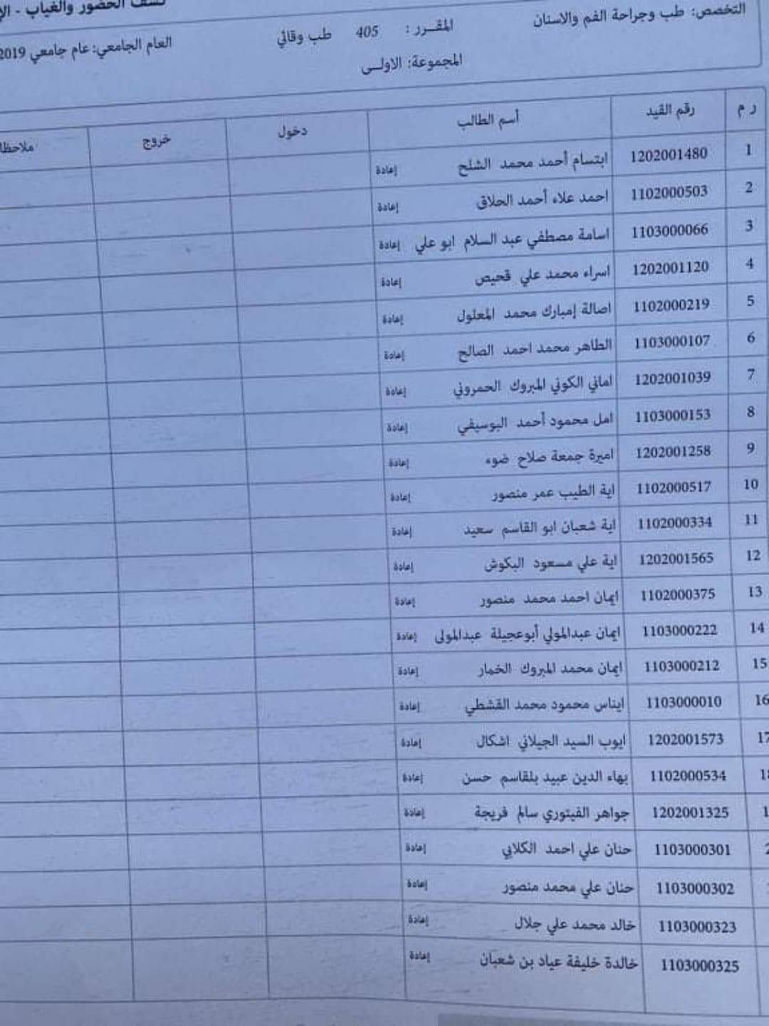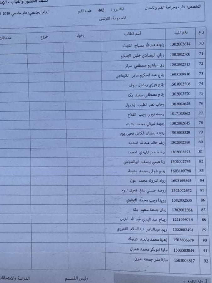 مجموعات العملي لمادة الطب الوقائي ليوم الثلاثاءالمواف 3 / 3 / 2020 على تمام الساعة 8 يرجى الالتزام بالمجموعات والحضور في الموعد