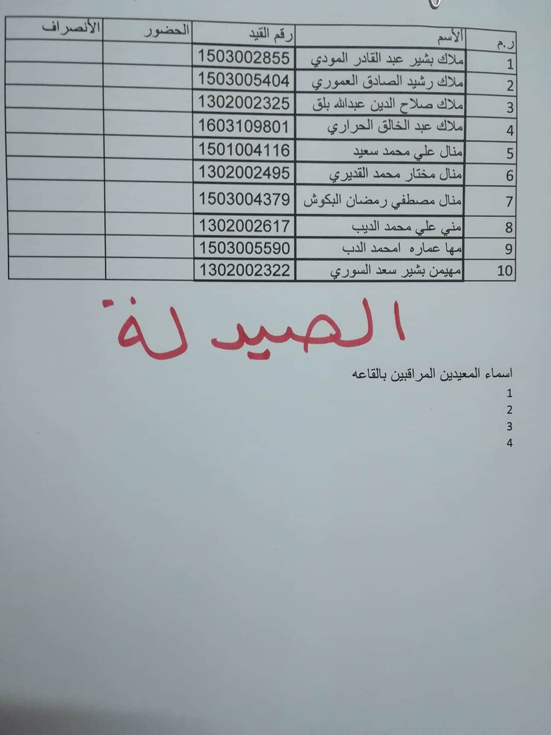 قوائم توزيع الطلبه للامتحان مادة طب الأطفال بقاعات الأسنان والصيدلة