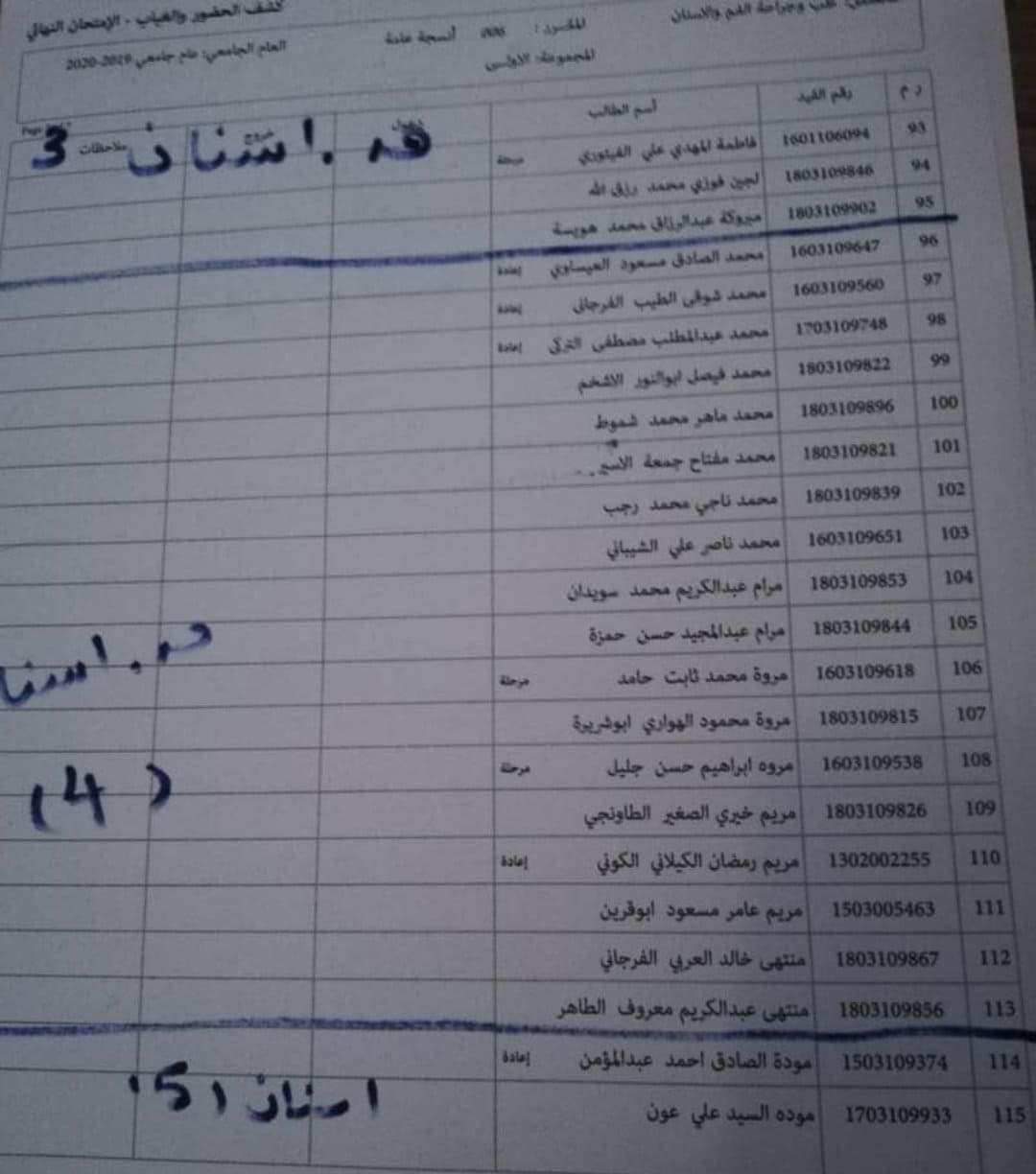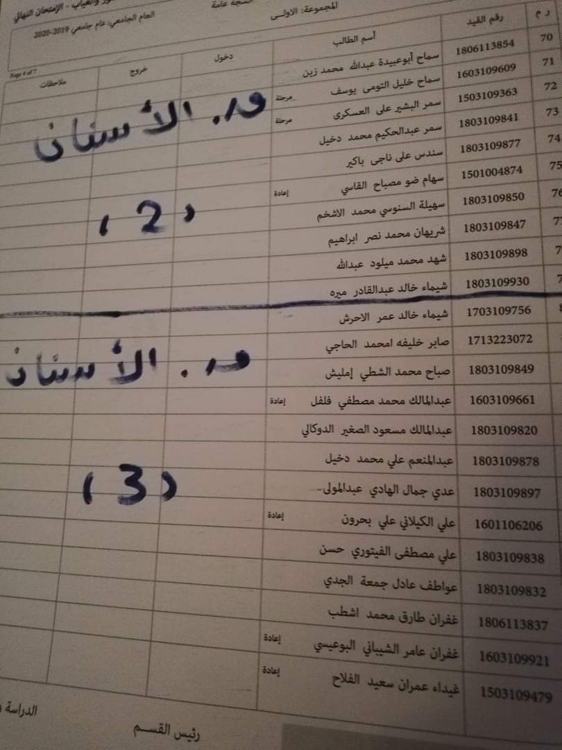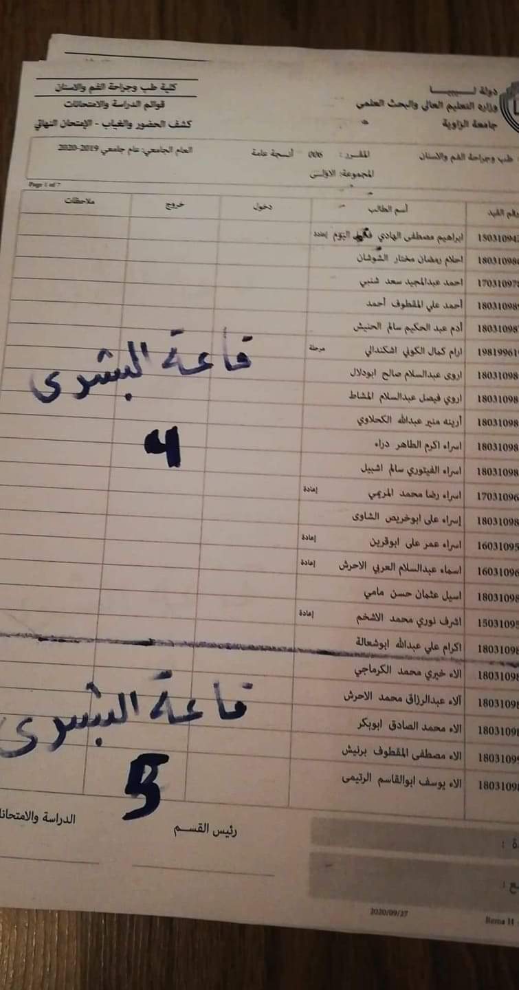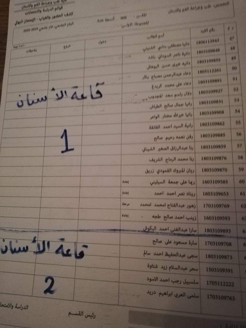توزيع القاعات للامتحان الدور الأول السنة الأولى ليوم غذا الأربعاء الموافق 14 / 10 / 2020 لمادة الأنسجة العامه على تمام الساعه 9