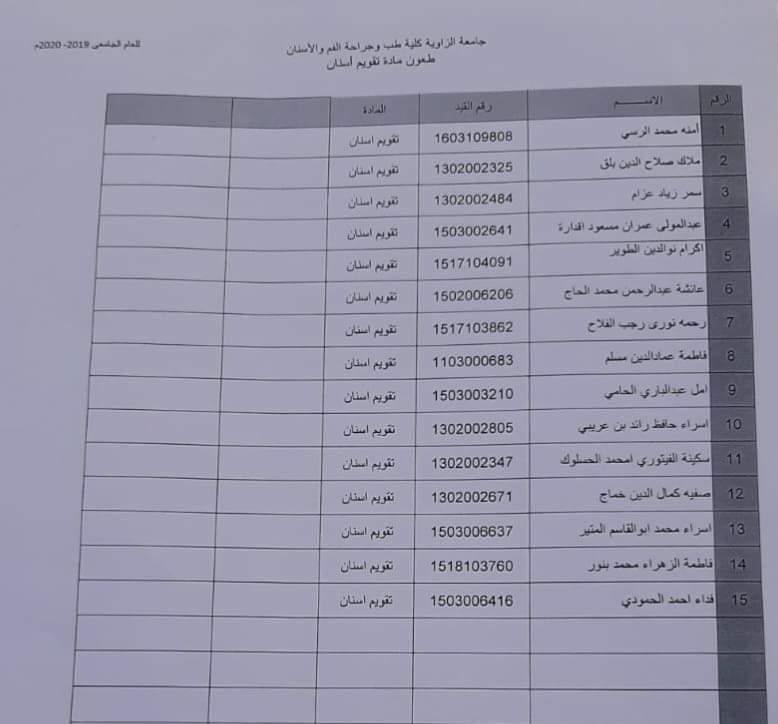 قوائم الطلبه المتقدمين لمراجعة أوراقهم
