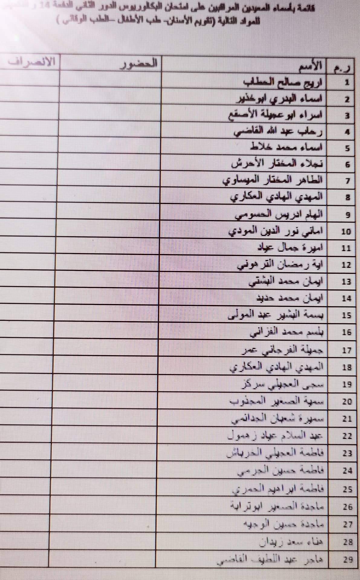 قائمة بأسماء المعيدين المراقبين على امتحان الدور الثاني لمادة طب الأطفال