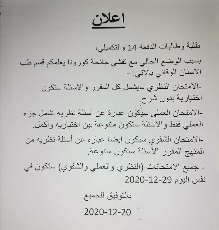 إعلان لطلبة الدفعه 14 والتكميلي