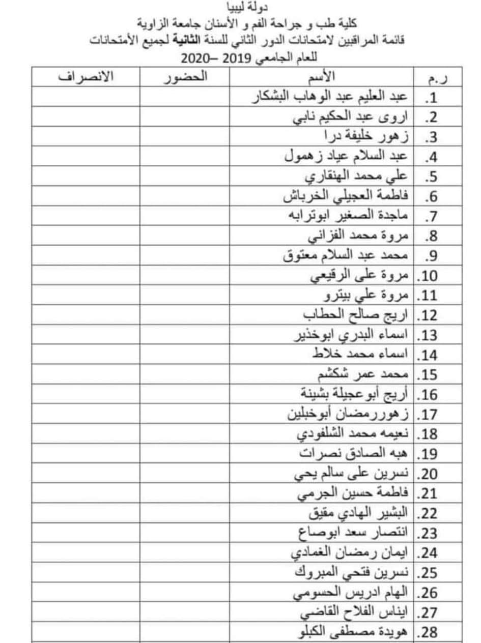 قائمة المعيدين المراقبين على امتحان ليوم غذا الأحد الموافق 3/ 1/2021 الدور الثاني للسنه الثانيه والاعداديات الطبية على تمام الساعه 9