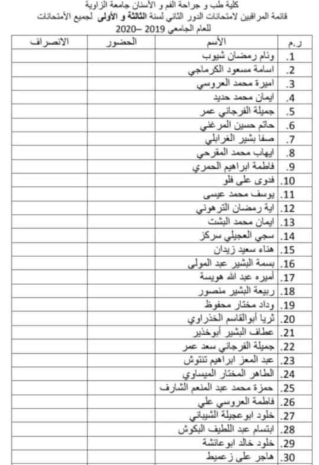 قائمة بأسماء المعيدين المراقبين على امتحان الدور الثاني للسنه الأولى ليوم الأربعاء