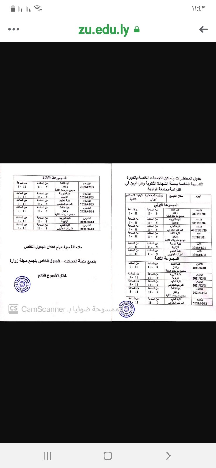 جدول المحاضرات وأماكن التجمعات الخاصة بالدورة التدريبية الخاصة بحملة الشهادة الثانوية الراغبين في الدراسة بجامعة الزاوية