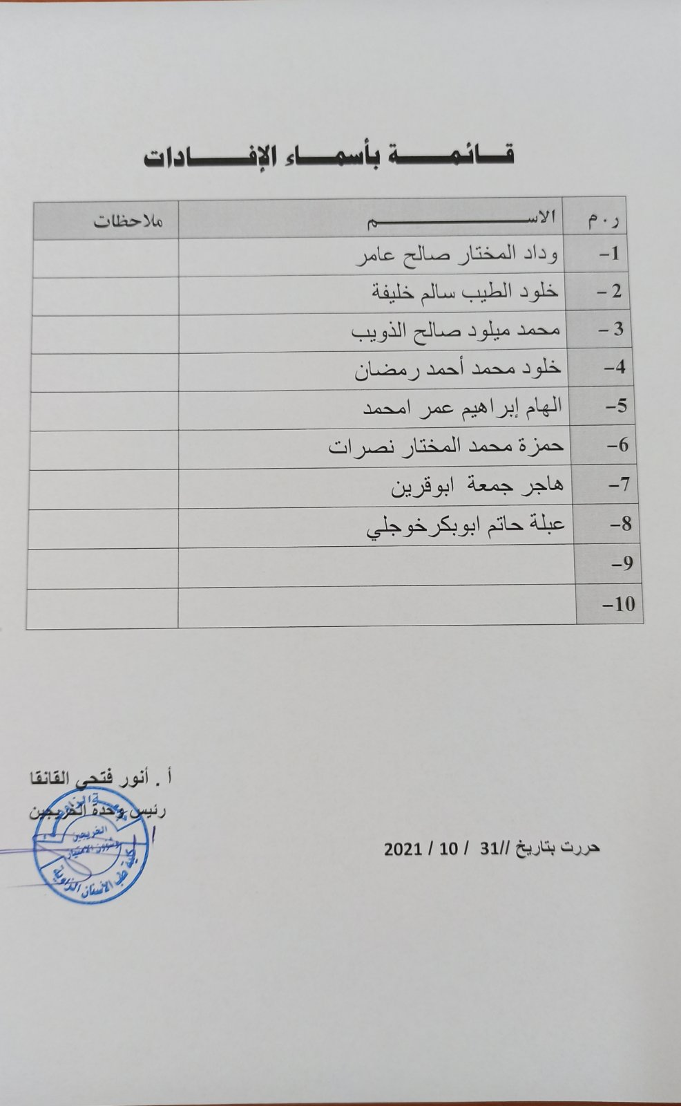 إعلان.. علي الطلبة الخريجين المذكوره أسمائهم في القوائم مراجعة مكتب المسجل العام بالجامعة..