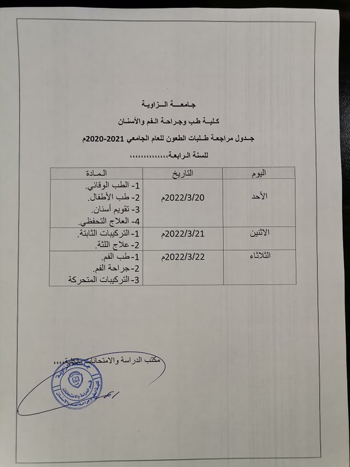 جدول مراجعه الطعون لطلبة السنة الرابعة الدور الثاني الدفعه 15 والتكميلي