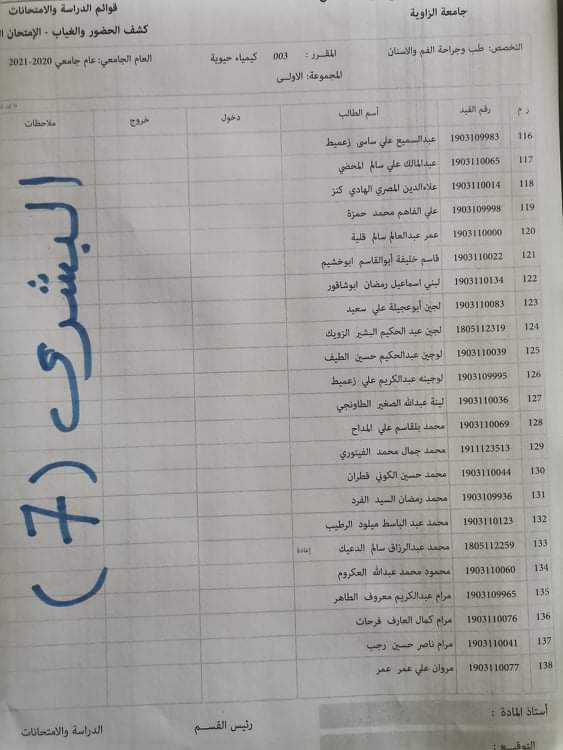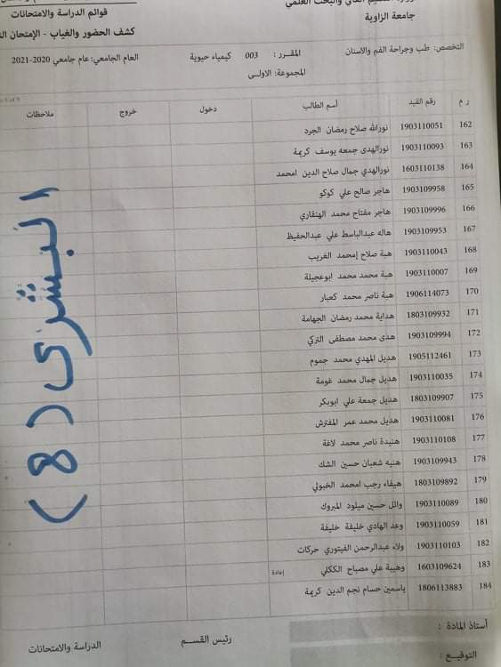 توزيع القاعات لامتحان الدور الاول لماده الكيمياء الحيوية ليوم الاربعاء الموافق23. 3 . 2022. علي الساعه تمام الساعة التاسعة يرجى الحضور قبل الامتحان بنصف ساعه