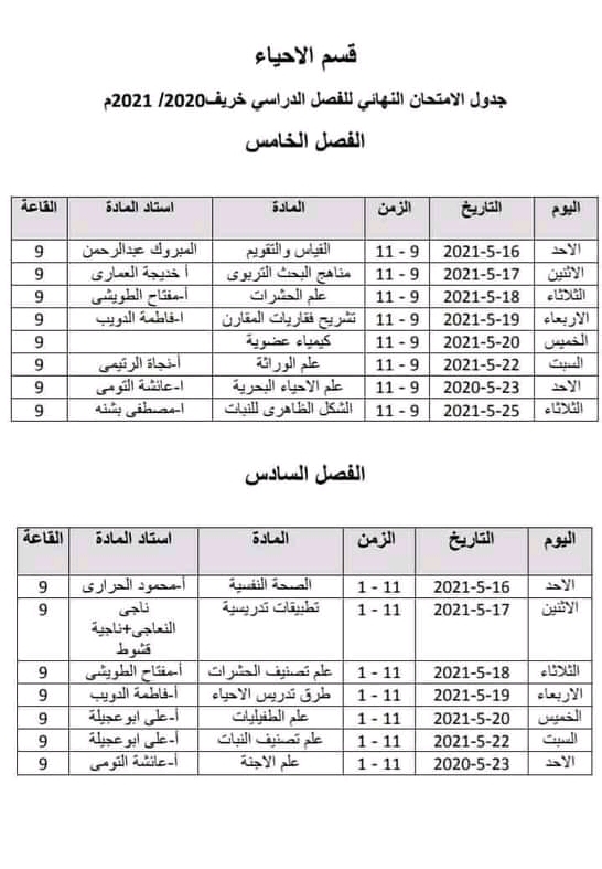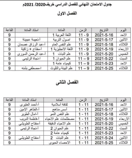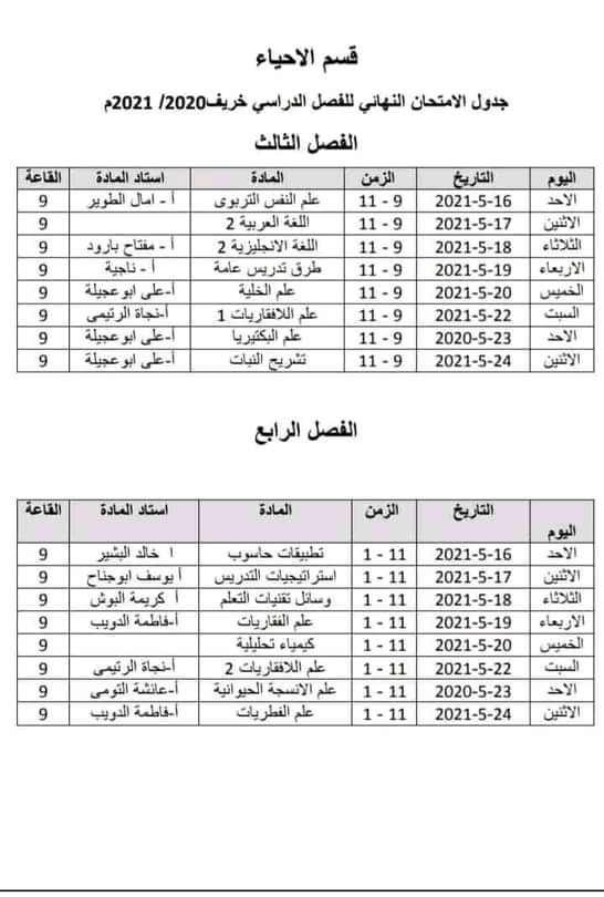 جدول امتحانات خريف 2021/2020 جدول امتحانات خريف 2021/2020
