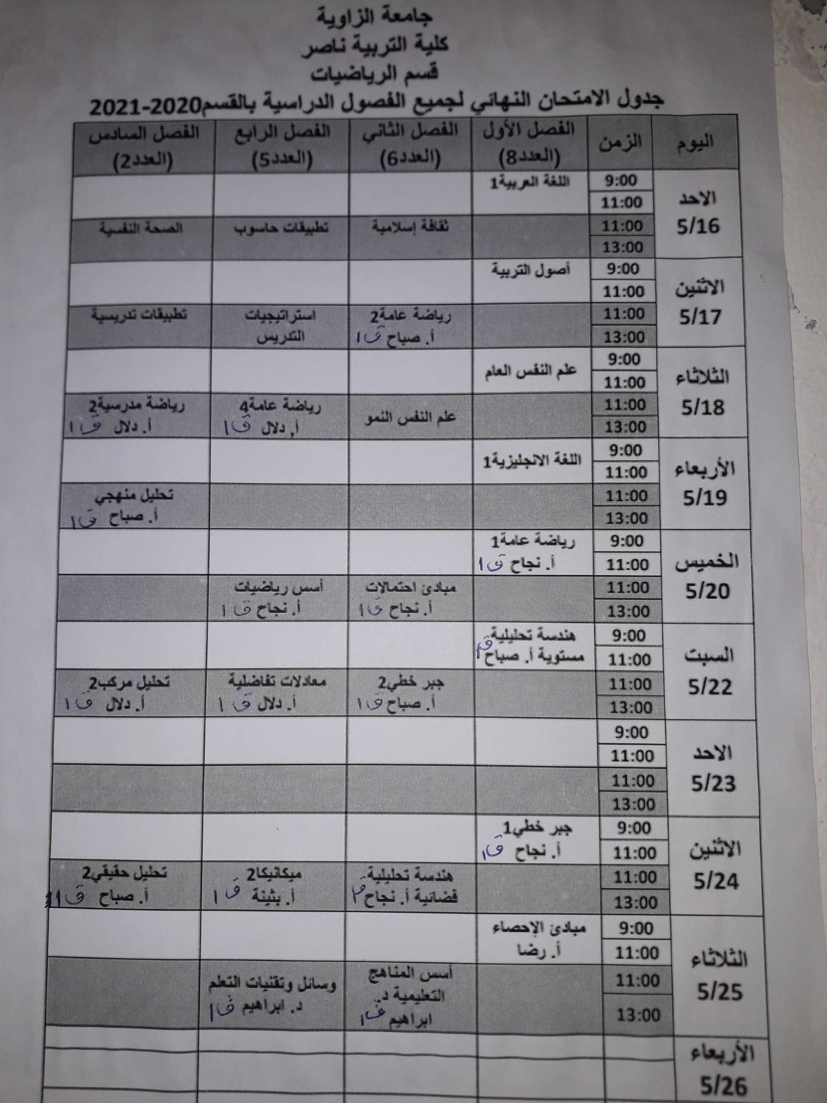 جدول امتحانات خريف 2021/2020 جدول امتحانات خريف 2021/2020