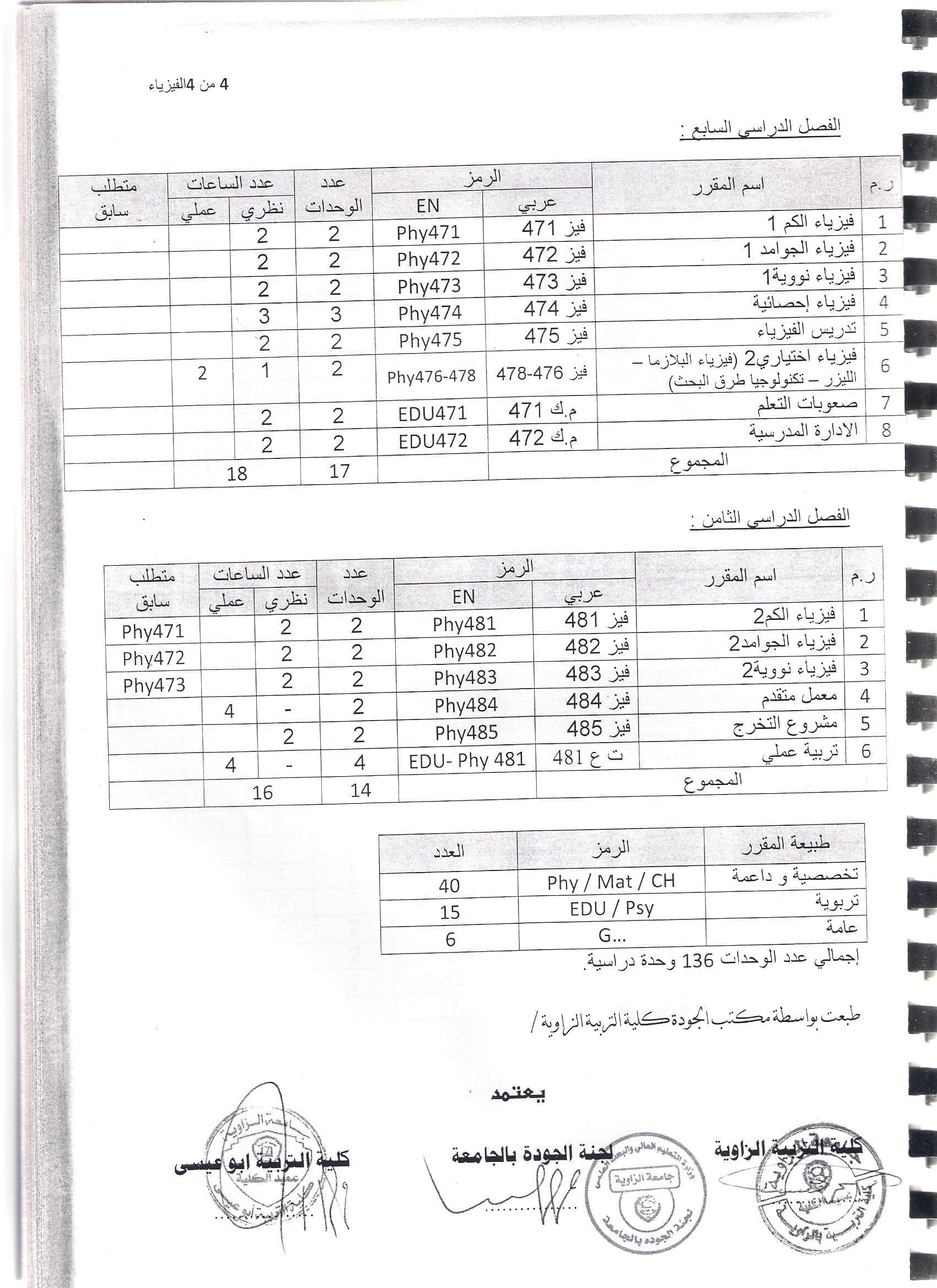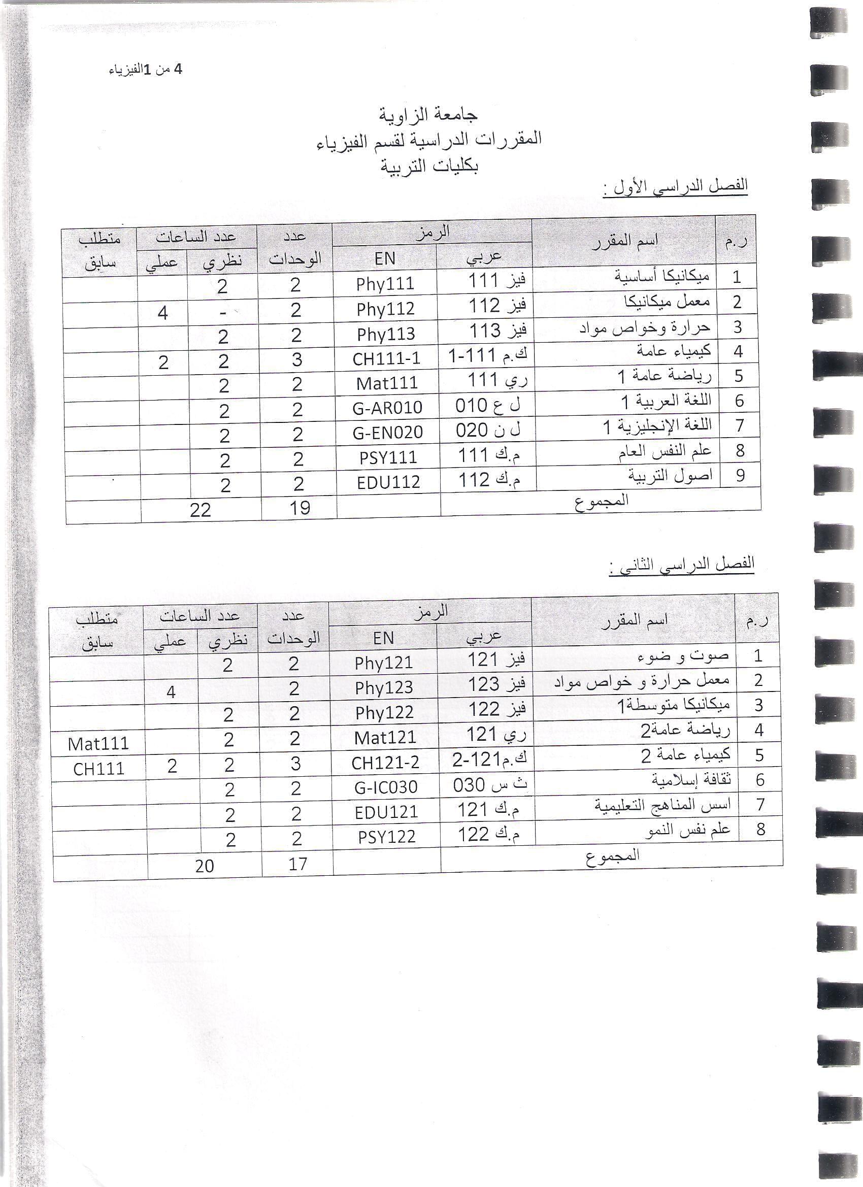 يُعد قسم الفيزياء أحد الأقسام العلمية في كلية التربية أبو عيسى وافتتح القسم مع افتتاح الكلية في عام 1994- 1995م، وتولى منصب رئيس القسم في ذلك الوقت الأستاذ حسن جابر عطا عراقي الجنسية, وكانت الكلية في ذلك الوقت معهد لإعداد المعلمين ونظام الدراسة حينذاك ثلاث سنوات يمنح المتخرج منها شهادة الدبلوم العالي. وفي عام 2000م أصبح نظام الدراسة أربعة سنوات حيث تم تغيير المناهج الدراسية بما يتناسب ومتطلبات التعليم الإعدادي والثانوي وأصبح المتخرج ينال شهادة بكالوريوس علوم وتربية، وفي سنة 2012م بدأ العمل بنظام الفصل الدراسي المغلق ويشتمل على 134 وحدة دراسية مقسمة على ثمان فصول حيث تم الاعتماد على خطة دراسية مواكبة للتطور العلمي ومتطلبات المجتمع. يقوم برئاسة القسم حالياُ الأستاذة عفاف صالح الزوالي ويوجد بالقسم 9 أعضاء هيأة تدريس كما أن عدد الطلبة بالقسم حالياً 100 طالب.