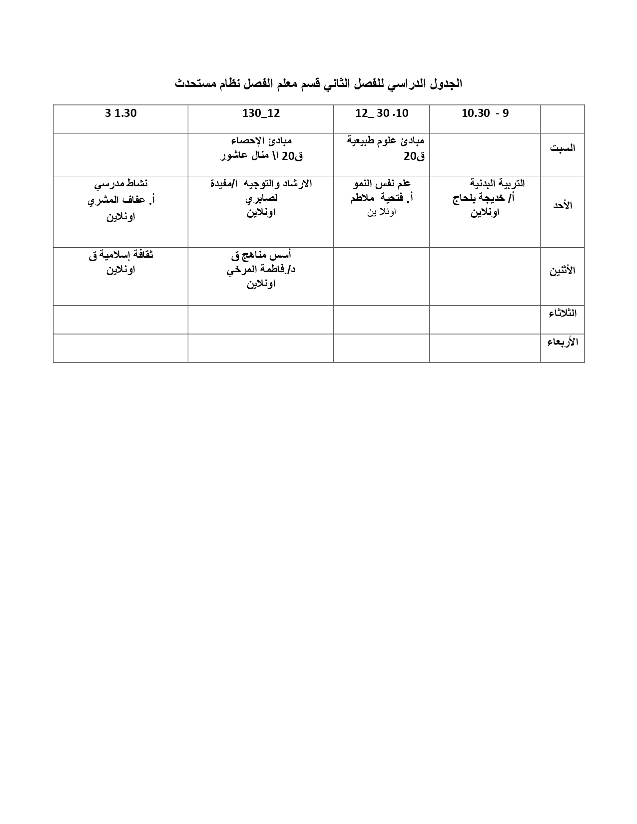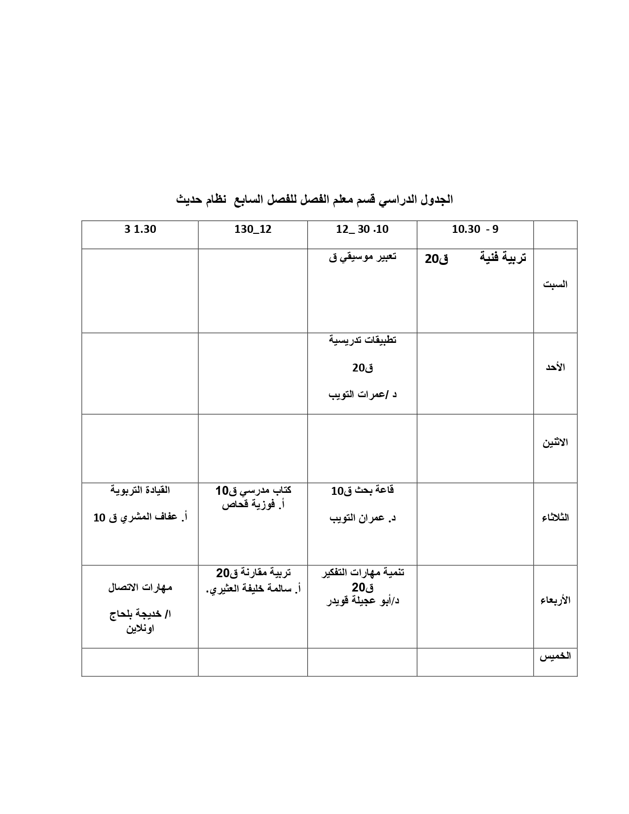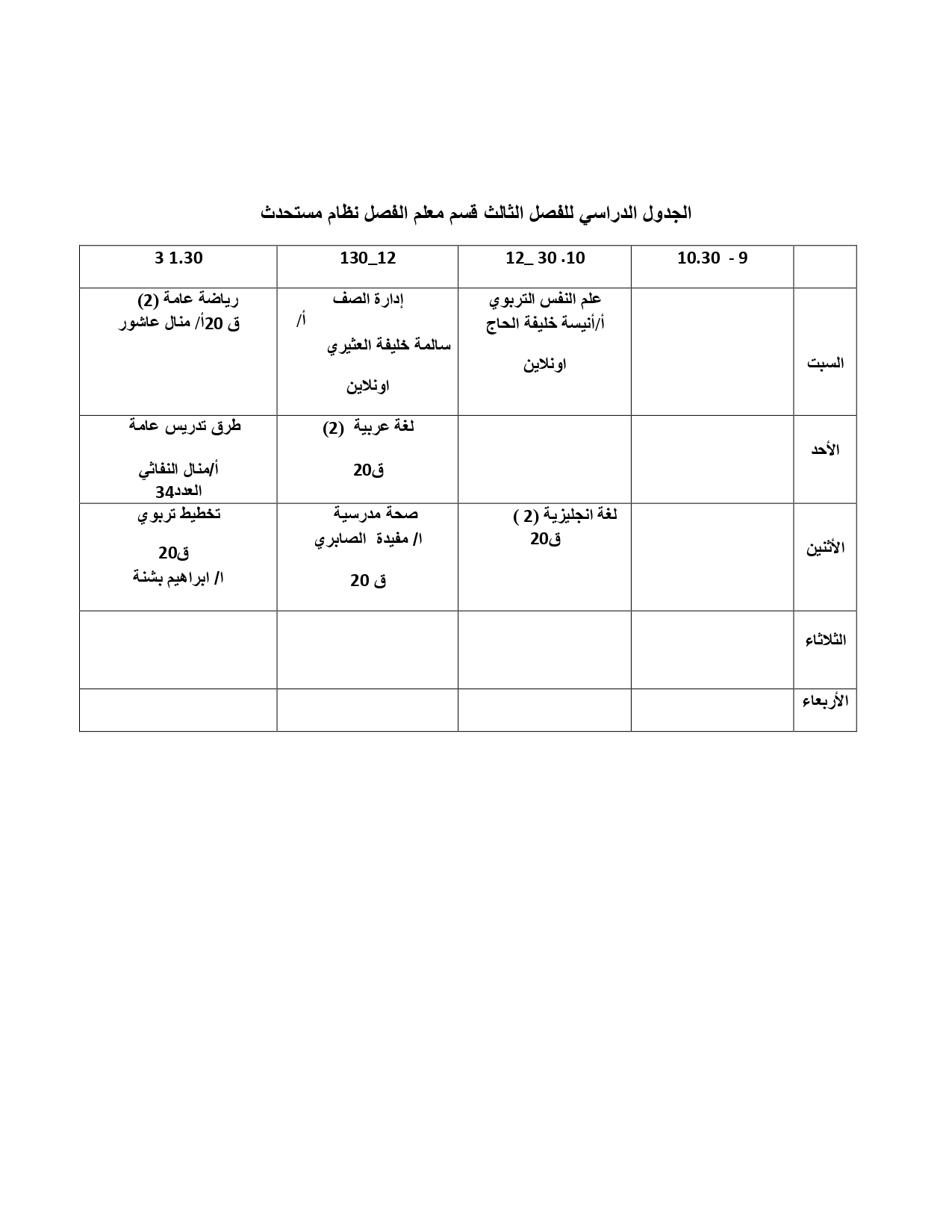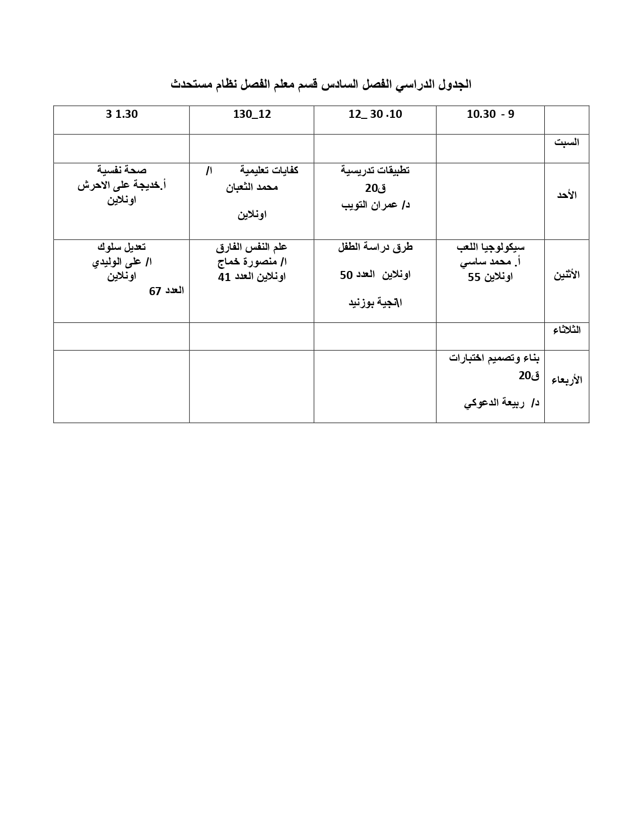 - تنمية مهارات التدريس للمواد العلميةخاصة في تدريس العلوم والرياضيات واللغة العربية والاجتماعيات.