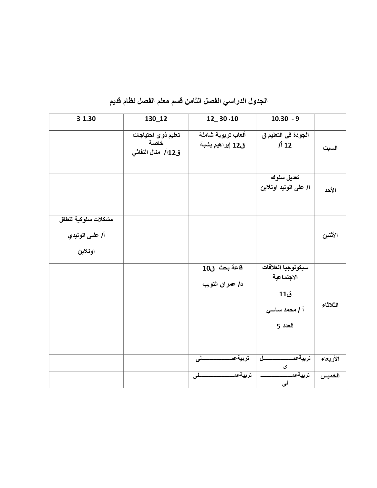 يسعى قسم التربية وعلم النفس شعبة معلم الفصل الى إكساب المتعلمين بالمهارات المعرفية والاتجاهات العلمية والكفاءات اللازمة في المجالات العلمية والتربوية, التي تمكنه من أداء مهامه التدريسية المستفبلية بدرجة عالية من الثقة وتقدير الذات كمعلم بمعايير الجودة الشاملة.