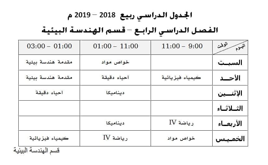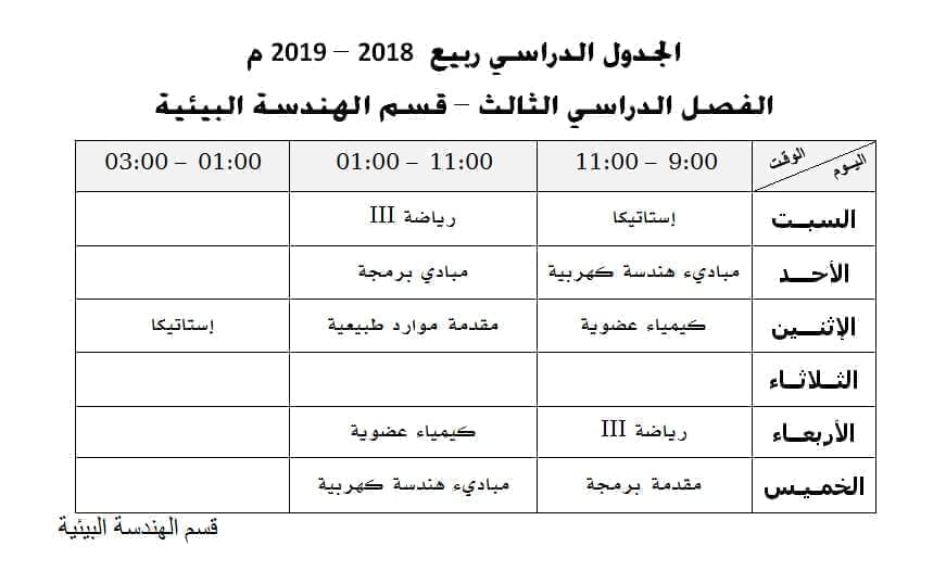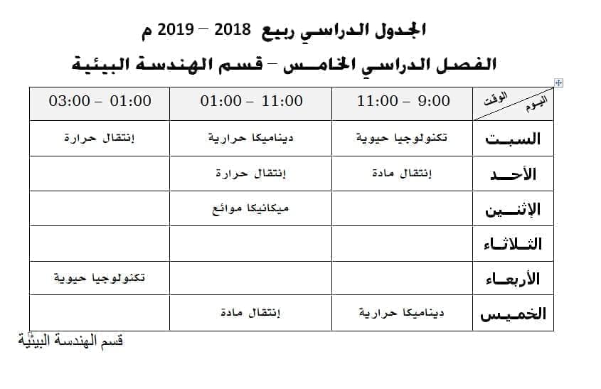 الجدول الدراسي