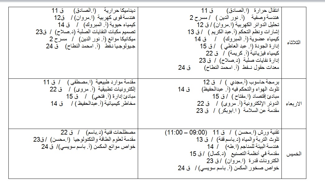 جدول الدراسة للفصل خريف 2021-2022م لجميع الاقسام العلمية.