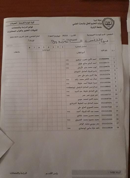 #أعلان على جميع طلبة قسمي النفط والجيولوجيا والمتقدمين على طلبات طعون للمواد التاليه هندسة كهربائية حاسوب2 تسجيلات ابار 1 تقييم مكامن هندسة مكامن معدات حقول مساحة جيو فيزياء أخد العلم بأنه سيتم البث في طلباتهم يوم الغد الاحد الموافق 8-9-2019 على تمام الساعه 10:30 صباحا. علية يطلب من الطلبة الالتزام بالحضور وسوف يتم مراجعة ورقة الطالب الذي يتخلف على الحضور. رئيس لجنةً الطعون