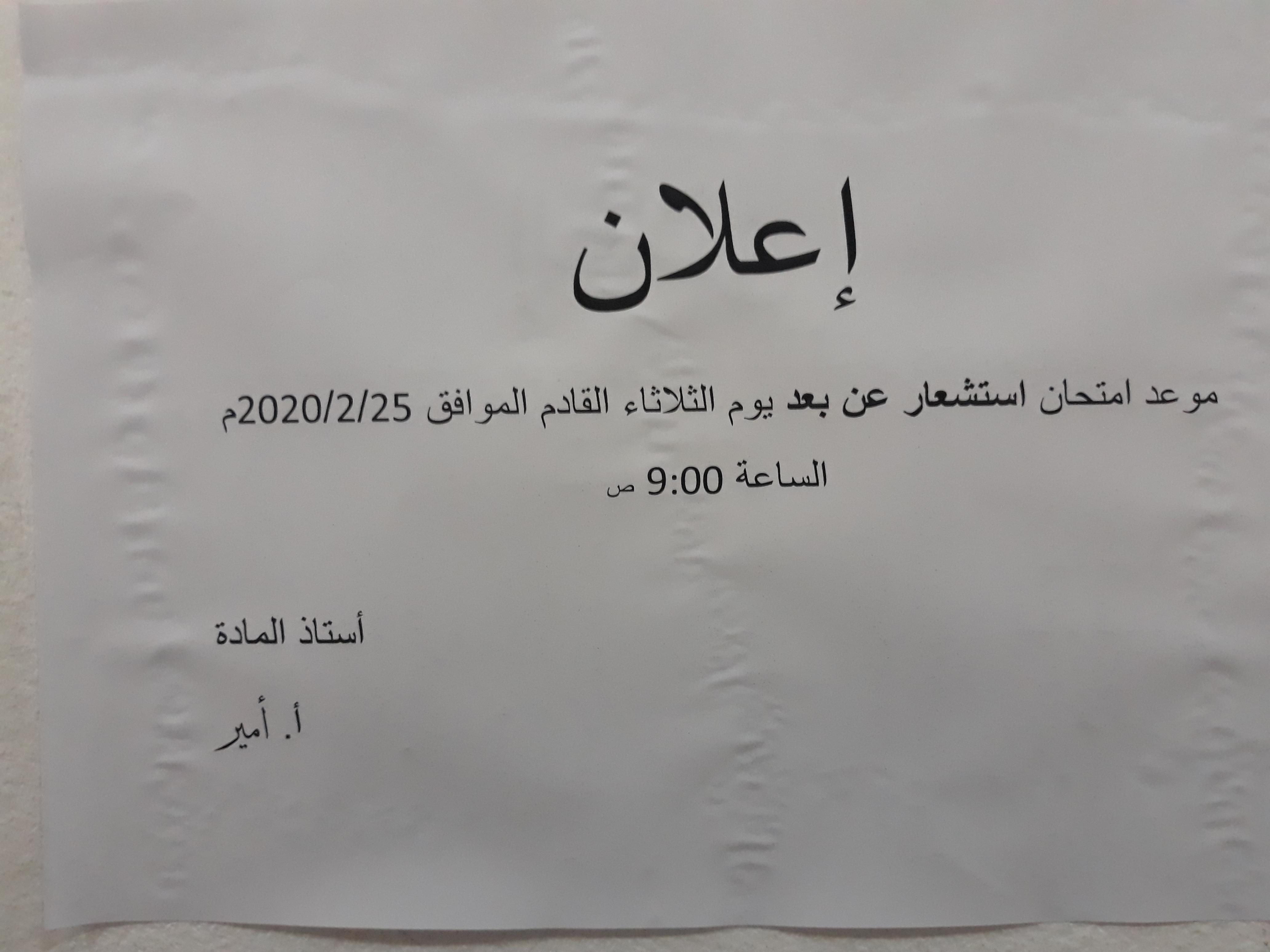 سيكون امتحان المقرر يوم الثلاثاء والاربعاء 25-26/5/2021