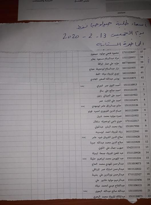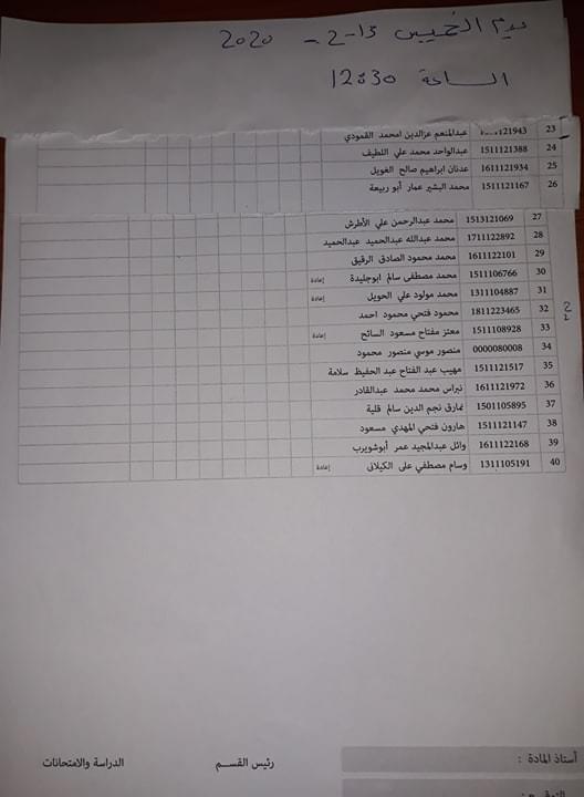 علي الطلبة الاتي اسماءهم الالتزام بالاسماء في القائمة واليوم والزمن استاذة المادة أ.زينب امبارك