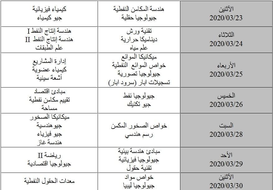علي جميع الطلبة الالتزام بالجدول