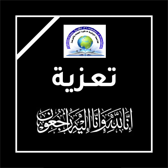 يتقدم أعضاء هيئة التدريس والموظفين وكل العاملين بالكلية بأحر التعازي للأخ سمير الشيباني الفيتوري في وفاة جدته سائلين الله عز وجل أن يتغمدها بواسع رحمته ورضاه وأن يلهم أهلها وذويها جميل الصبر والسلوان.