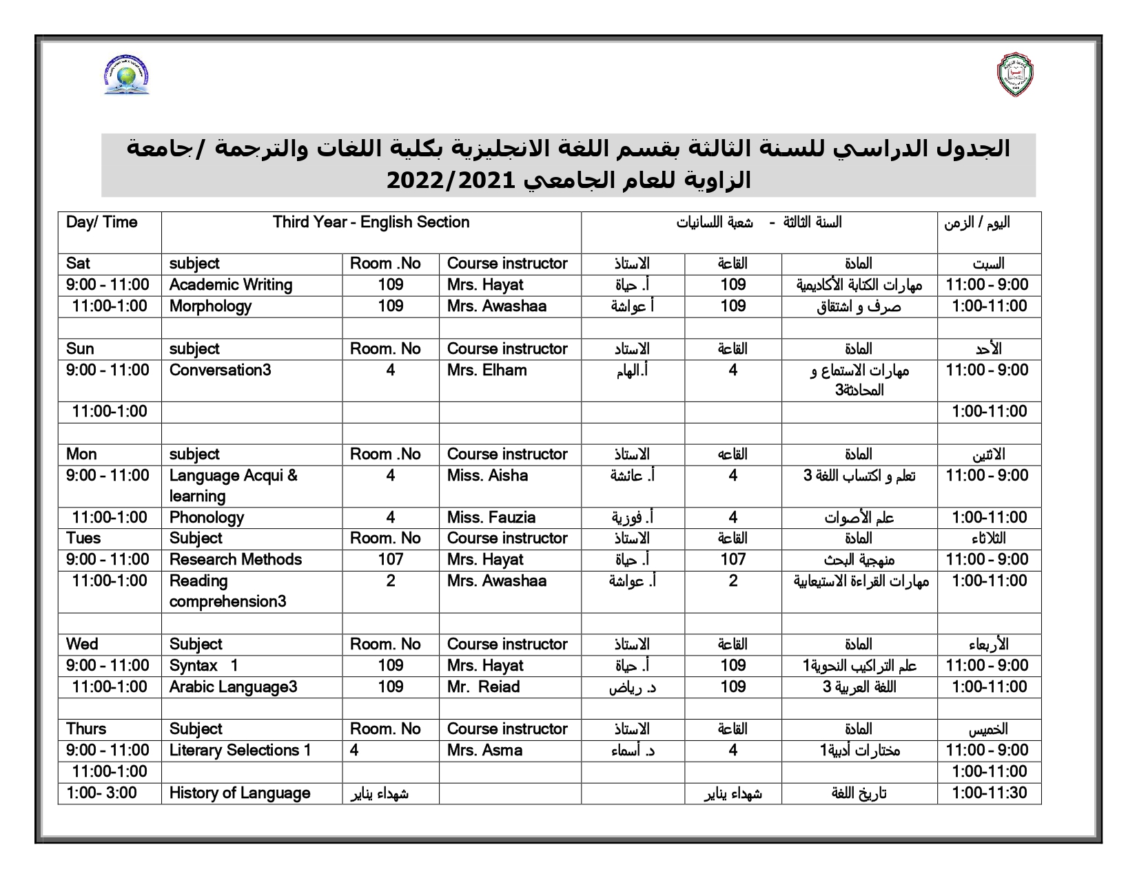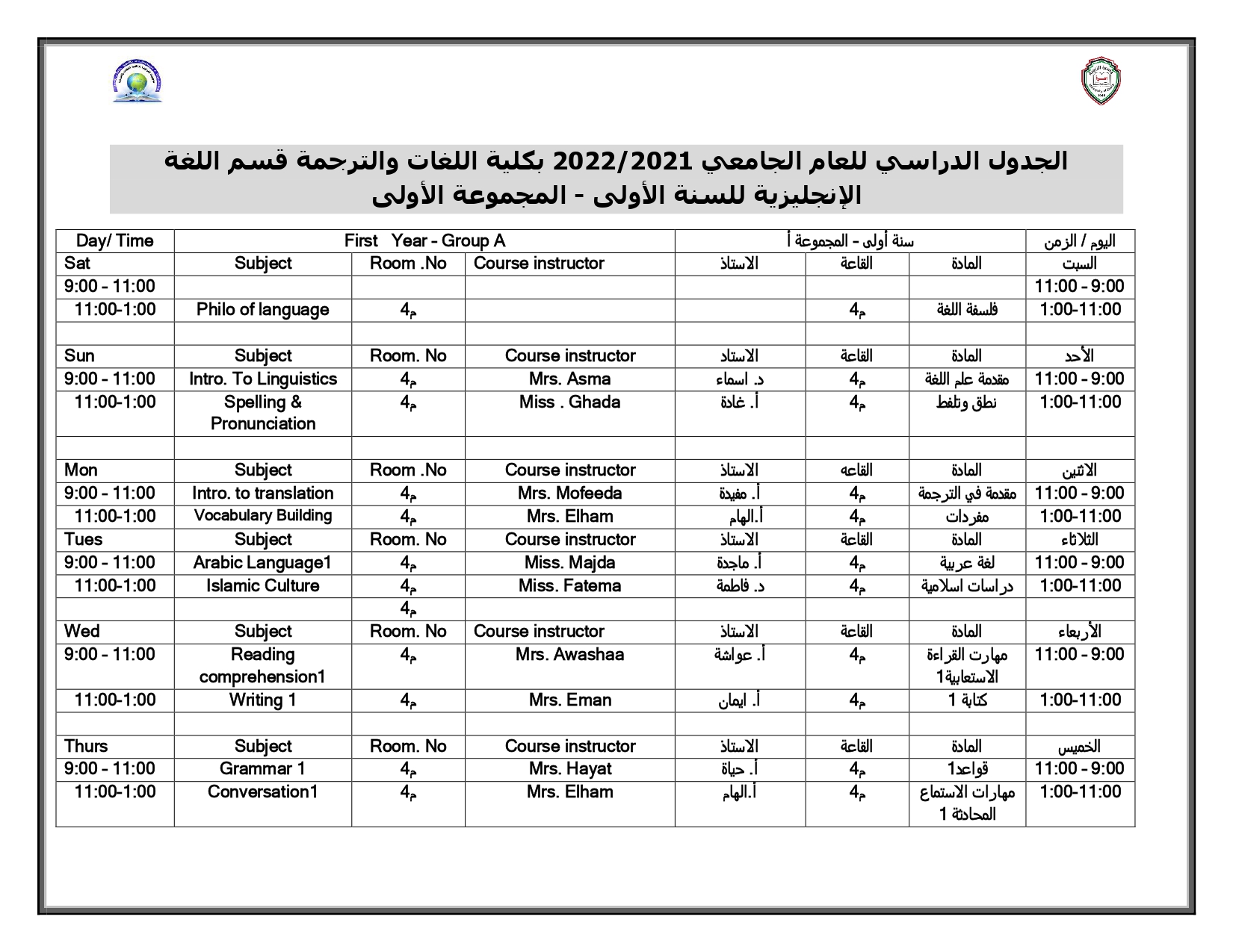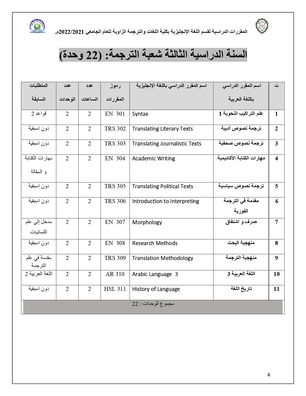 (أهداف قسم اللغة الإنجليزية (شعبة الترجمة: