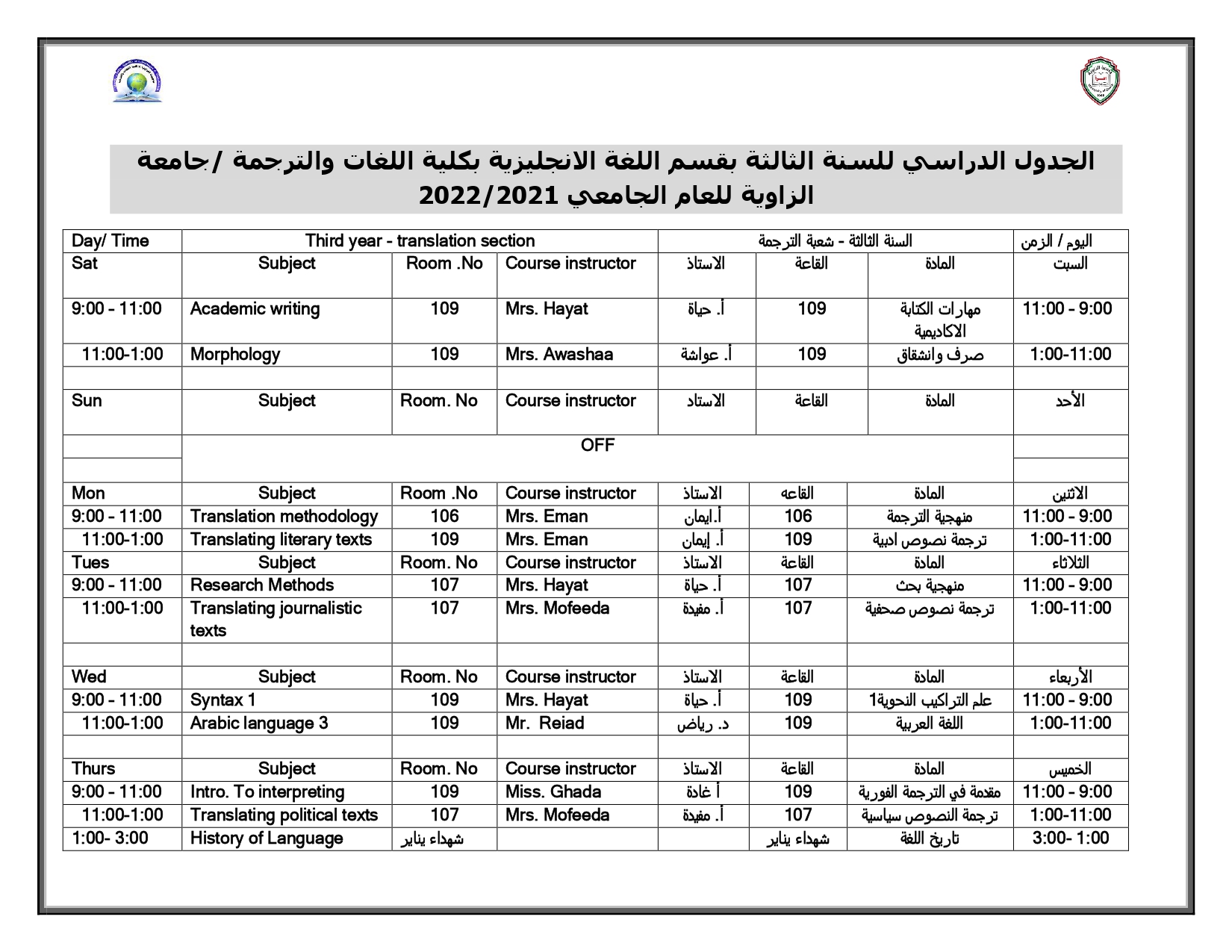 - خدمة المجتمع من خلال لبقيام بأعمال الترجمة التحريرية و الشفوية.