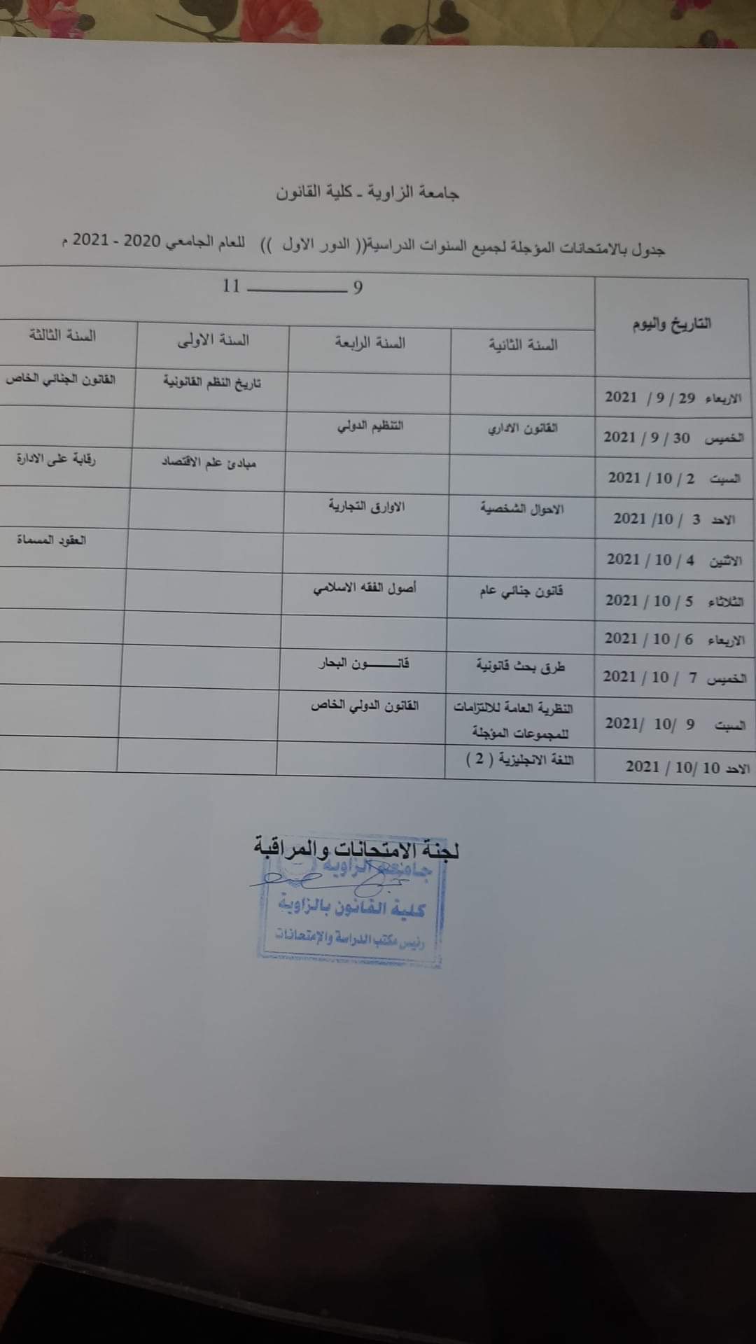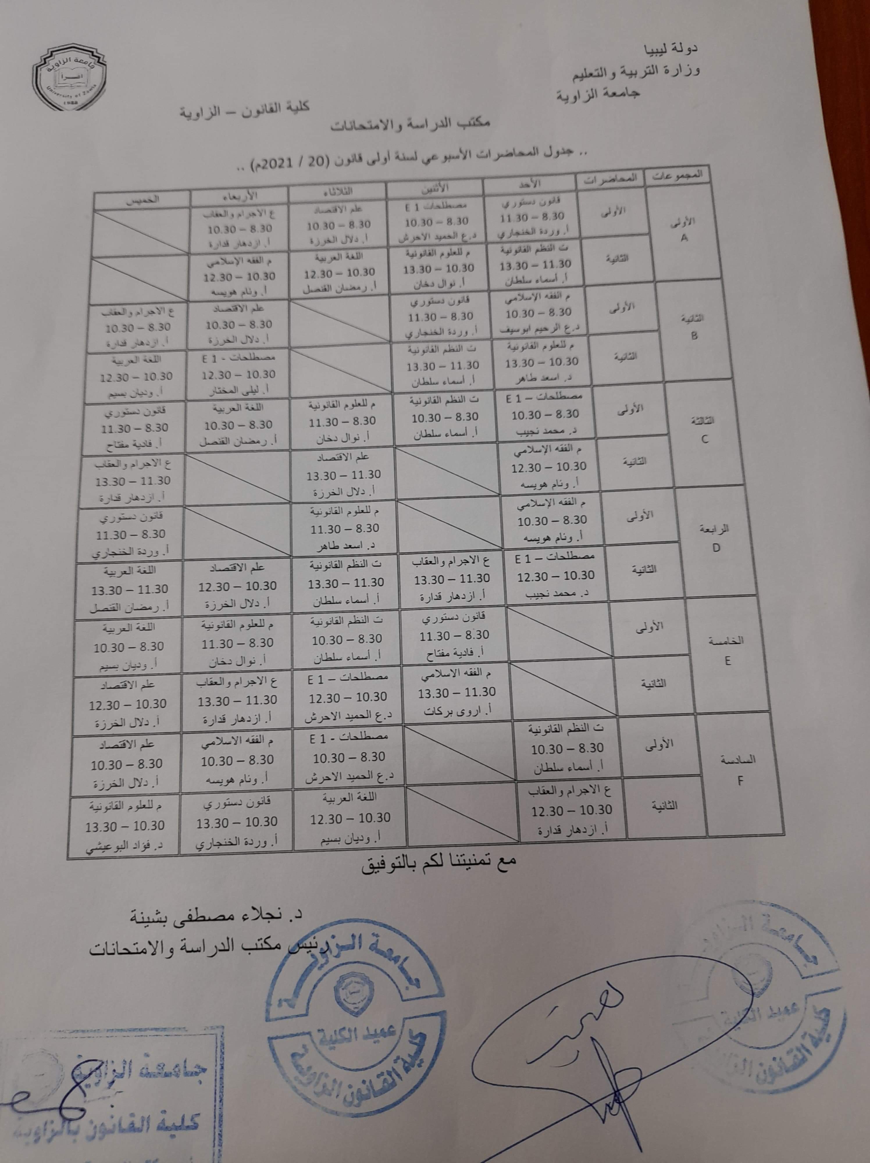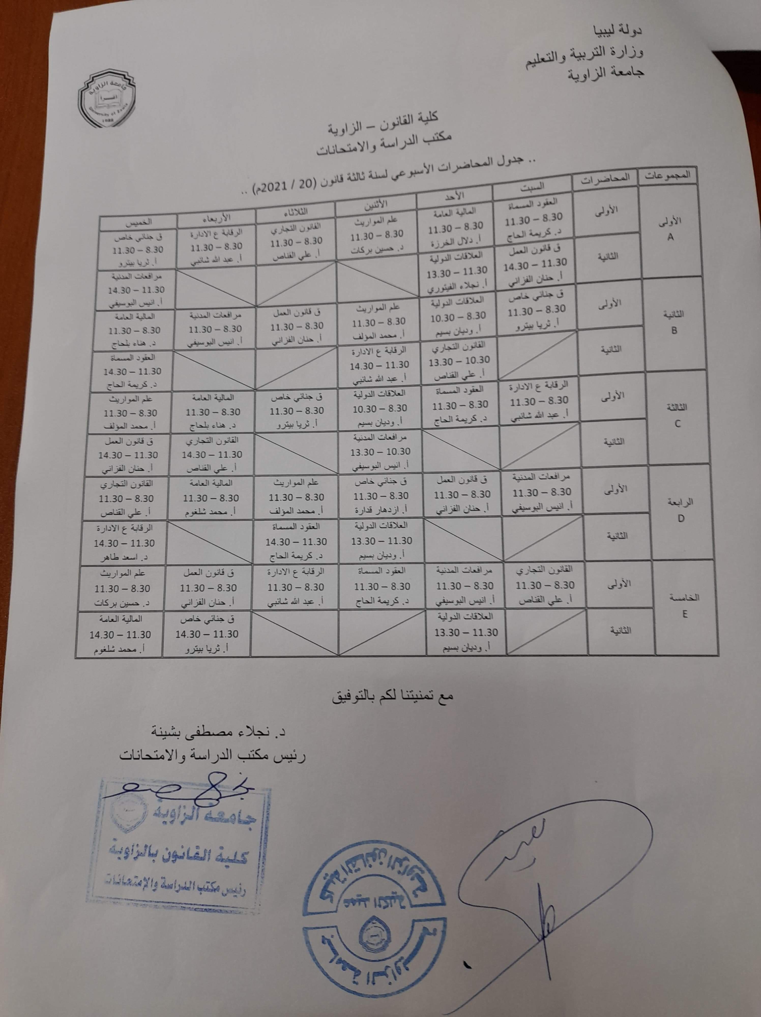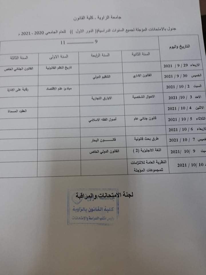 المكان : مبنى كلية القانون بالمركب الجنوبي لجامعة الزاوية