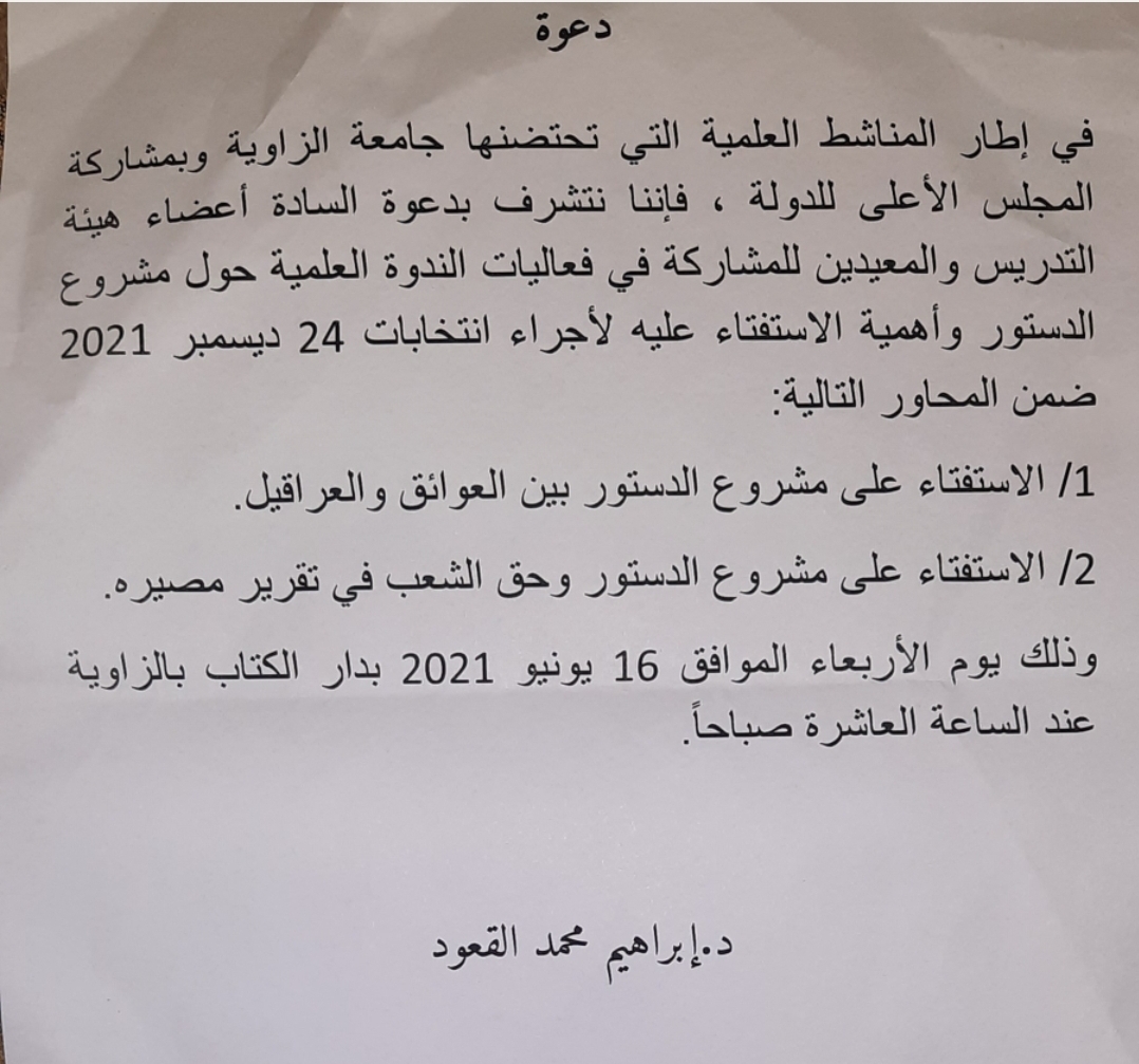 بمناسبة اليوم العالمي للعدالة الاجتماعية ، الذي يوافق ال 20 من فبراير لكل سنة ، تعتزم كلية القانون بجامعة الزاوية عقد جلسة تحاورية بعنوان :