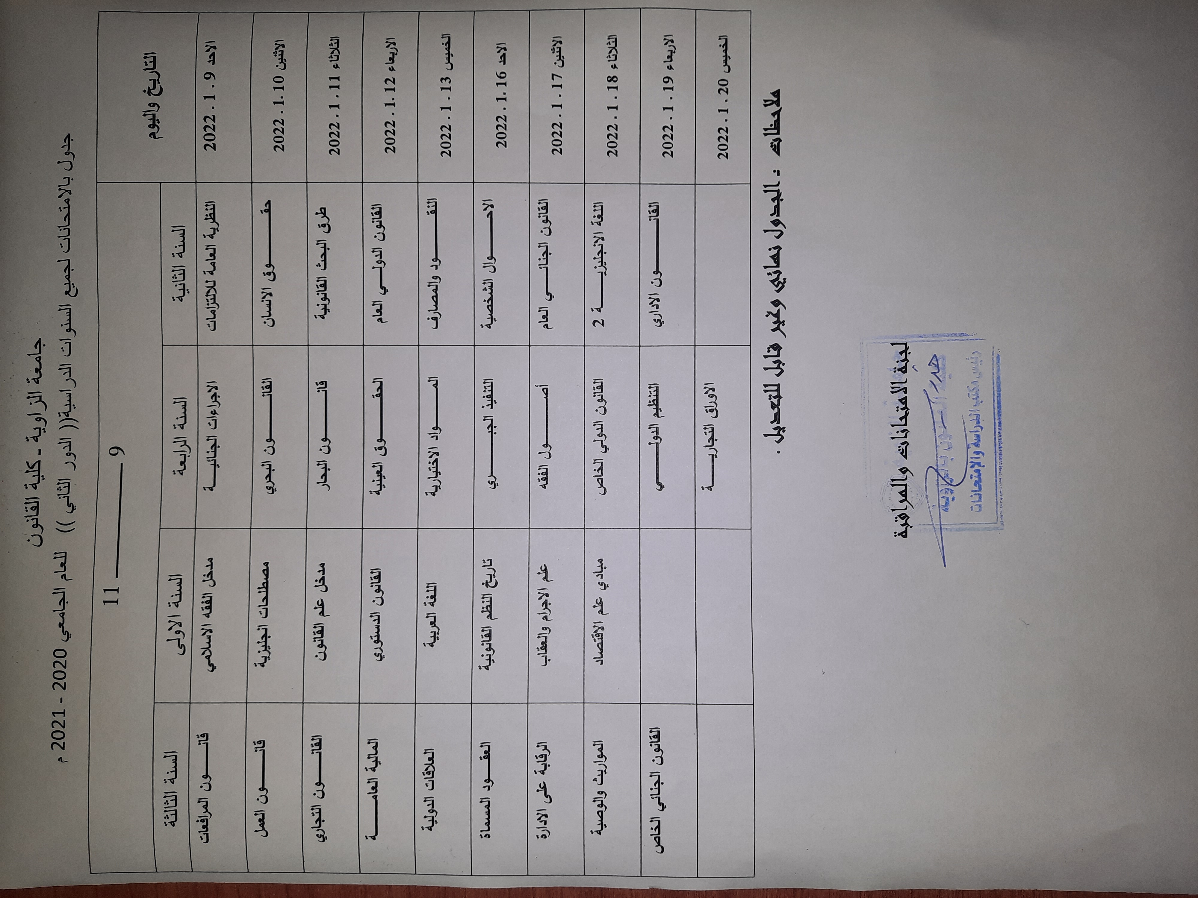 تعديل جدول الإمتحانات النهائية للسنة الثانية