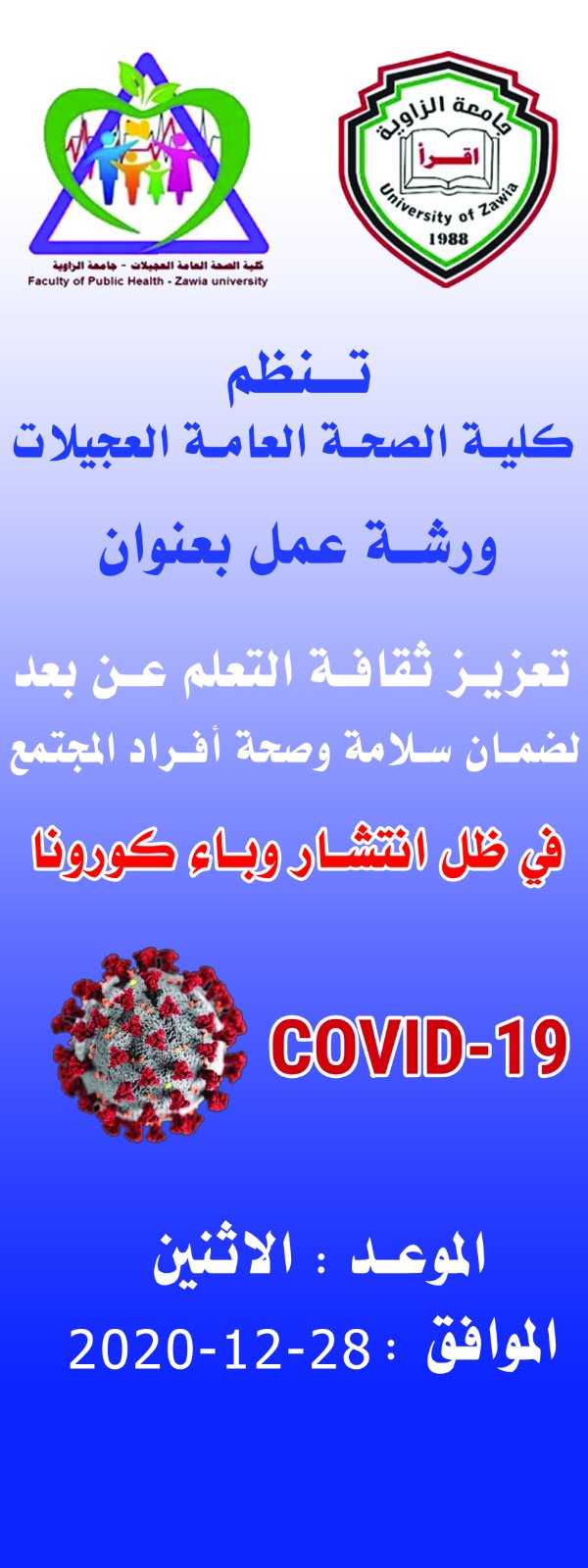 نظراً لأهمية إعداد الملكات العلمية التي تعمل عـــلى تطبيق النظام الصــــــحي في دولة ليبيا ، والمبنى على الرعاية الصحية الأولية ، ومــــــن أجل تطوير وتحسين الخدمات الطبية الصحية ولزيادة الوعي بأهمية المحافظة على البيئة وإصحاحها ، ولأن العنصر البشري من أهم ركائز التنمية ومقوماتها ، فقد كانت الحاجة ملحة إلى إعداد الكوادر العلمية المختصة بشؤون الصحة العامة. لذا ... أنشأت كلية الصحة العامة عام 2017 ف كأحد فروع جامعة الزاوية ومقرها مدينة العجيلات – ليبيا ، وقد بدأ ت الدراسة الفعلية بالكلية في العام الجامعي 2018 – 2019 .