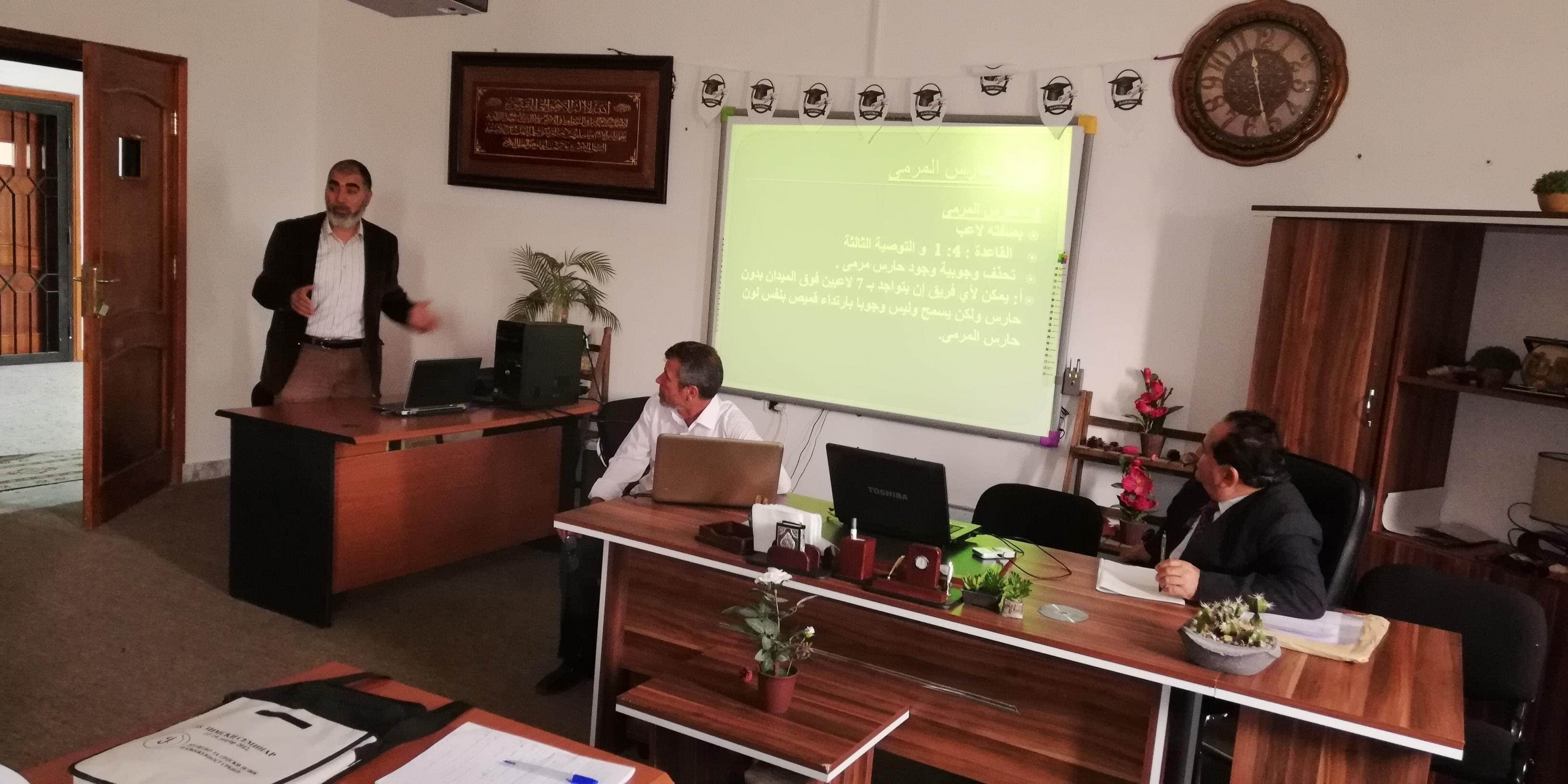 أُقيم اليوم بكلية التربية البدنية محاضرة علمية أشرف عليهل ونظمها قسم الألعاب بالتعاون مع مكتب الاستشارات العلمية بالكلية حيث أوضح المحاضرين بهذه المحاضرة التغيير المستمر الحاصل بالألعاب الرياضية وأهم الألعاب المستحدثة بكرة القدم وحضر هذه المحاضرة مجموعة من أعضاء هيئك التدريس بالكلية وللطلاب والدارسين بقسم الدراسات العليا. وتطرق الحاضرين لبعض النقاط المهمة في بعض التعديلات بقانون كرةاليد والقى هذ ه محاضرة أد. كمال الغول تخصص تدريب رياضي كرة القدم والدكتور حسن الجباني تخصص تدريب كرة يد