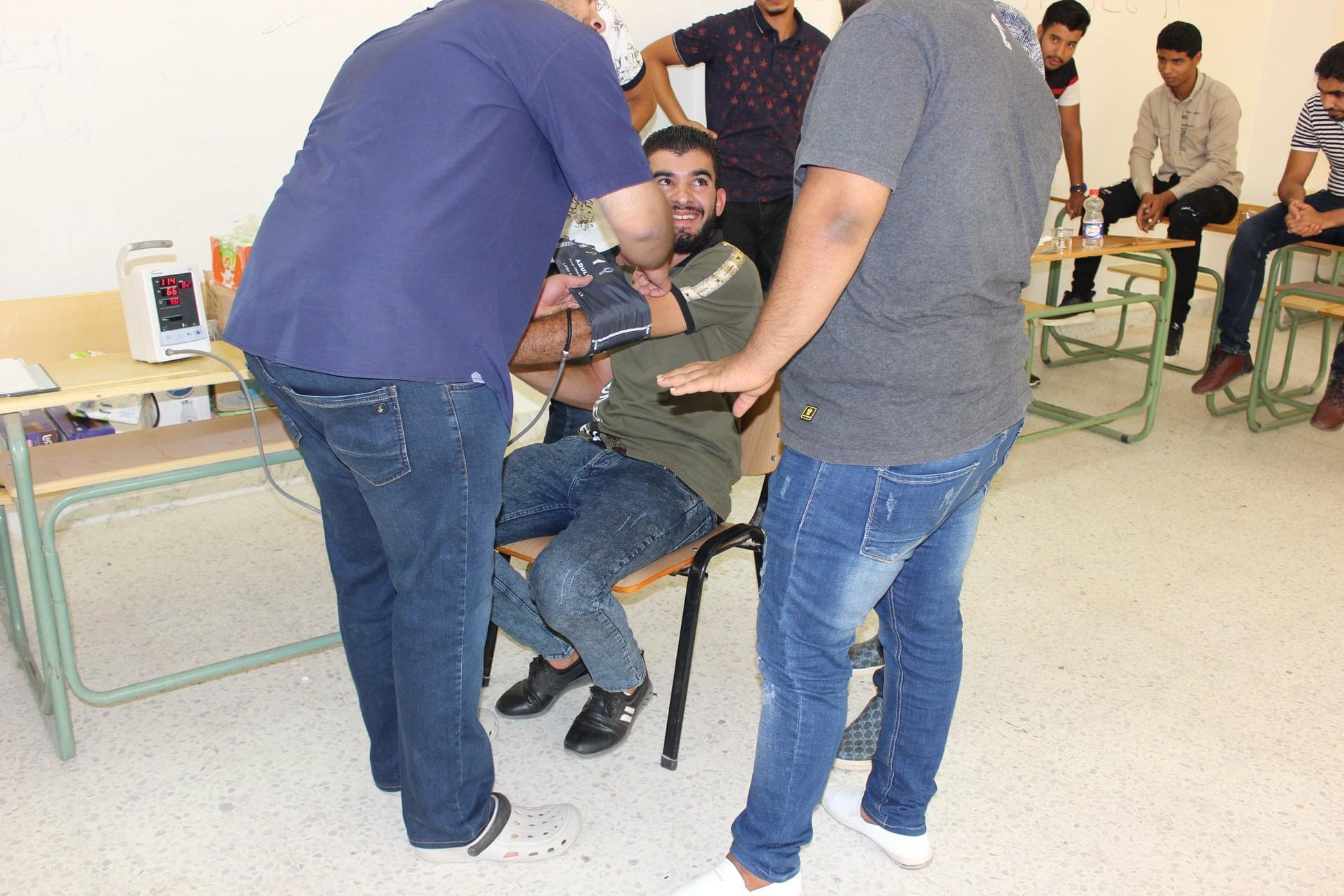 في اطار عمل كلية الاقتصاد الزاوية وادراكاً منها بالمسؤولية الاجتماعية التي تقع علي عاتقها و مساهمة منها في خدمة المجتمع والبيئة .قامت ادارة كلية الاقتصاد بتنظيم حملة تبرع بالدم يوم الخميس الموافق 18/7/2019 وذلك لدعم مصرف الدم بمستشفى الزاوية التعليمي في ظل الطلب المتزايد خلال هذه الفترة .وقد تنادى أعضاء هيئة التدريس والموظفين وطلبة الكلية بالمساهمة والتبرع لهذه الحملة . وقد أكد السيد عميد الكلية د. الصديق الكيلاني بدورية هذه الحملات وأنه سوف يتم تنظيم حملات تبرع بالدم كل ستة أشهر بالإضافة إلى جملة من النشاطات الأخرى التي تخدم المجتمع و البيئة
