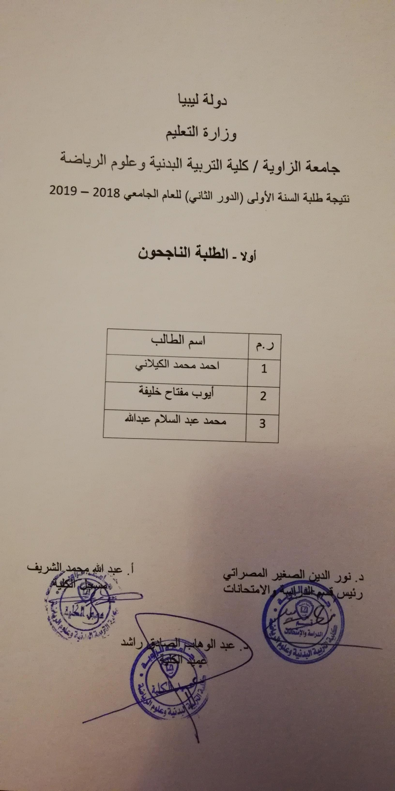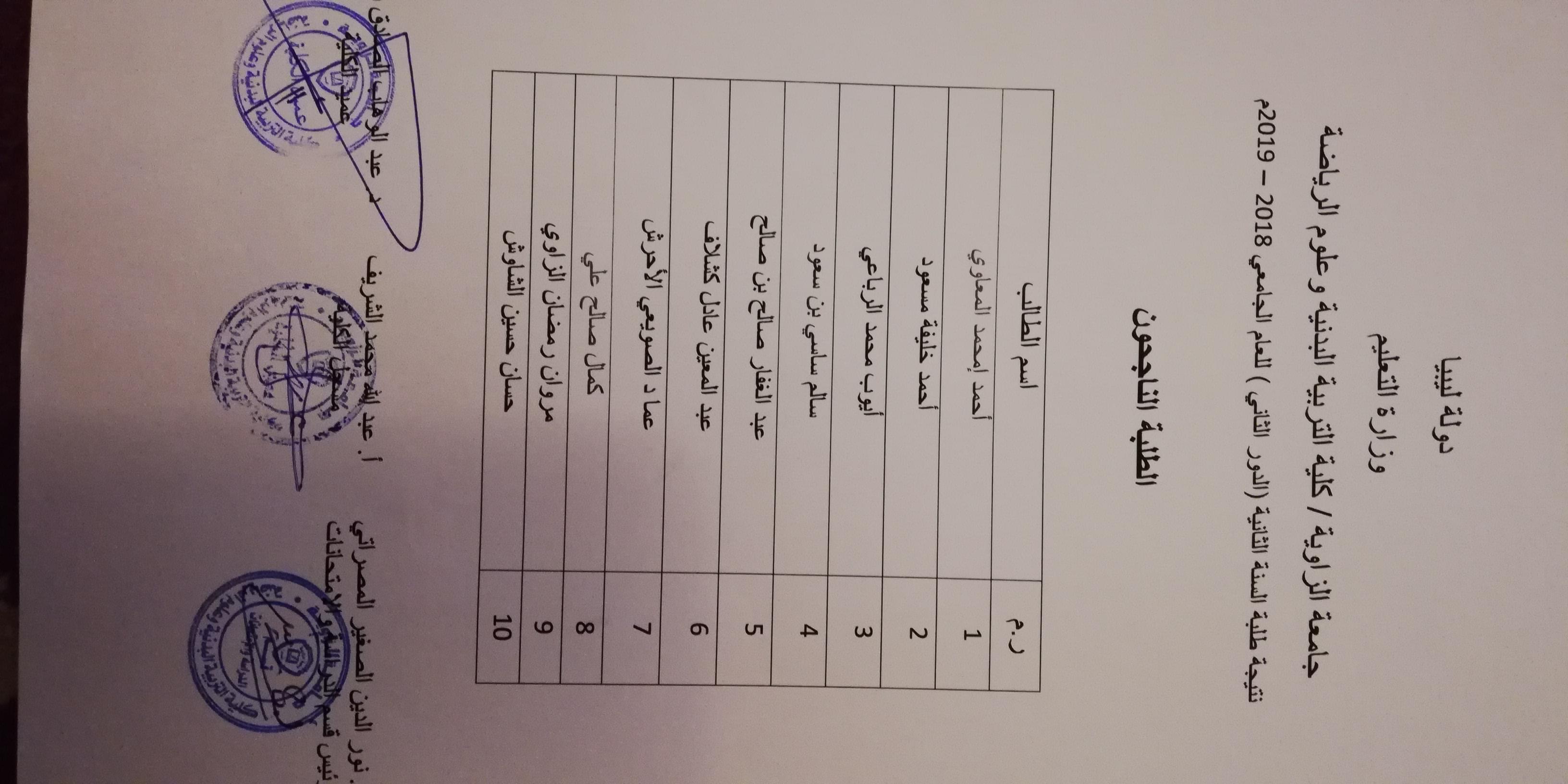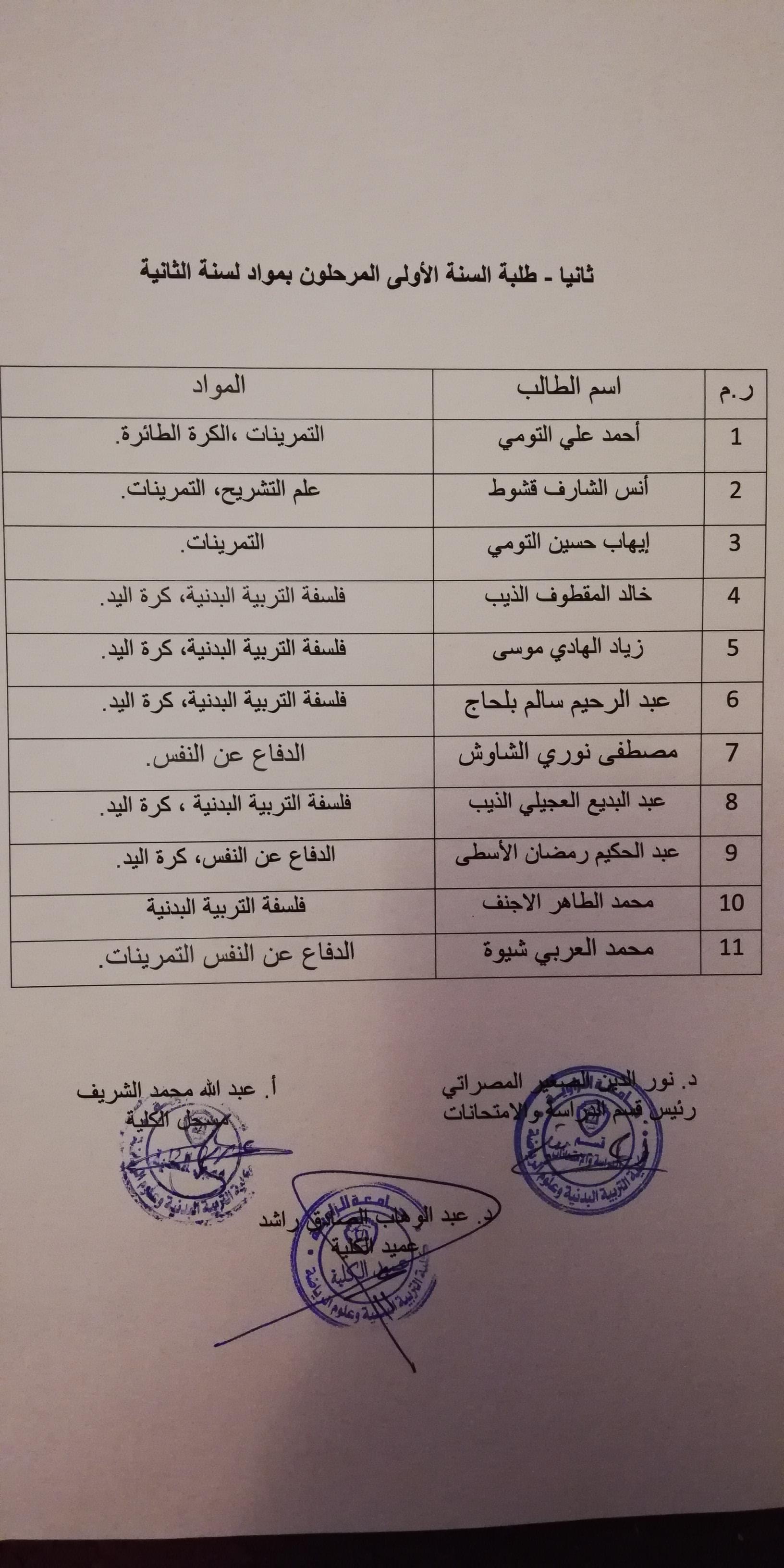 نتيجة الدور الثاني لكلية التربية البدنية وعلوم الرياضة