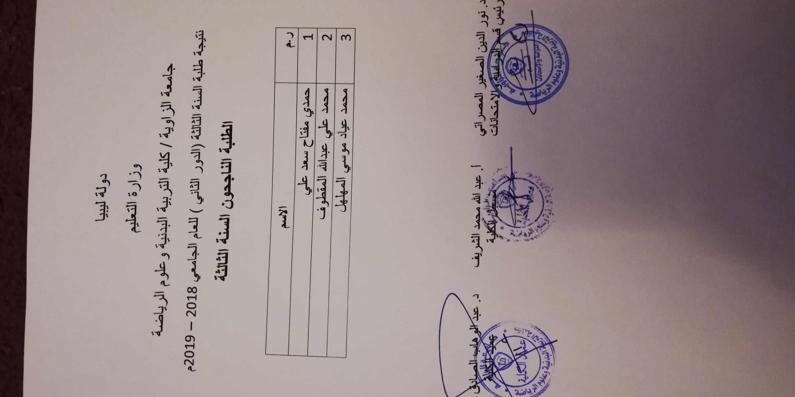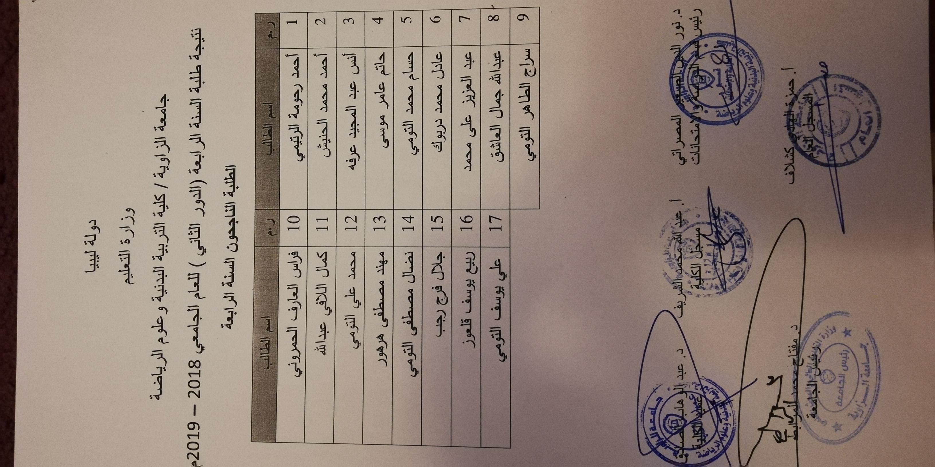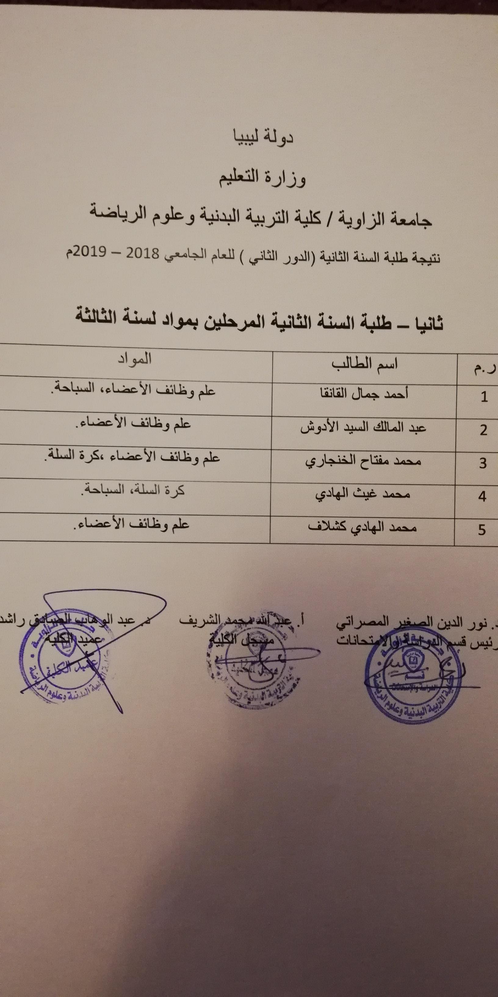 نتيجة الدور الثاني لكلية التربية البدنية وعلوم الرياضة