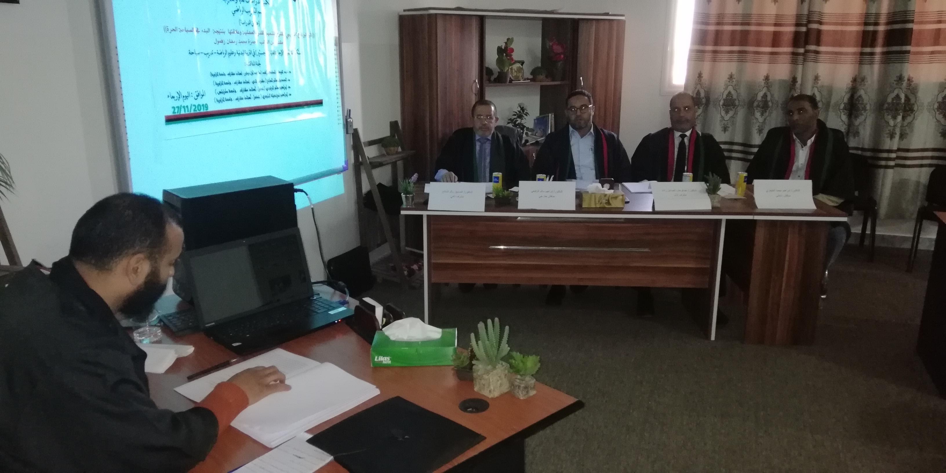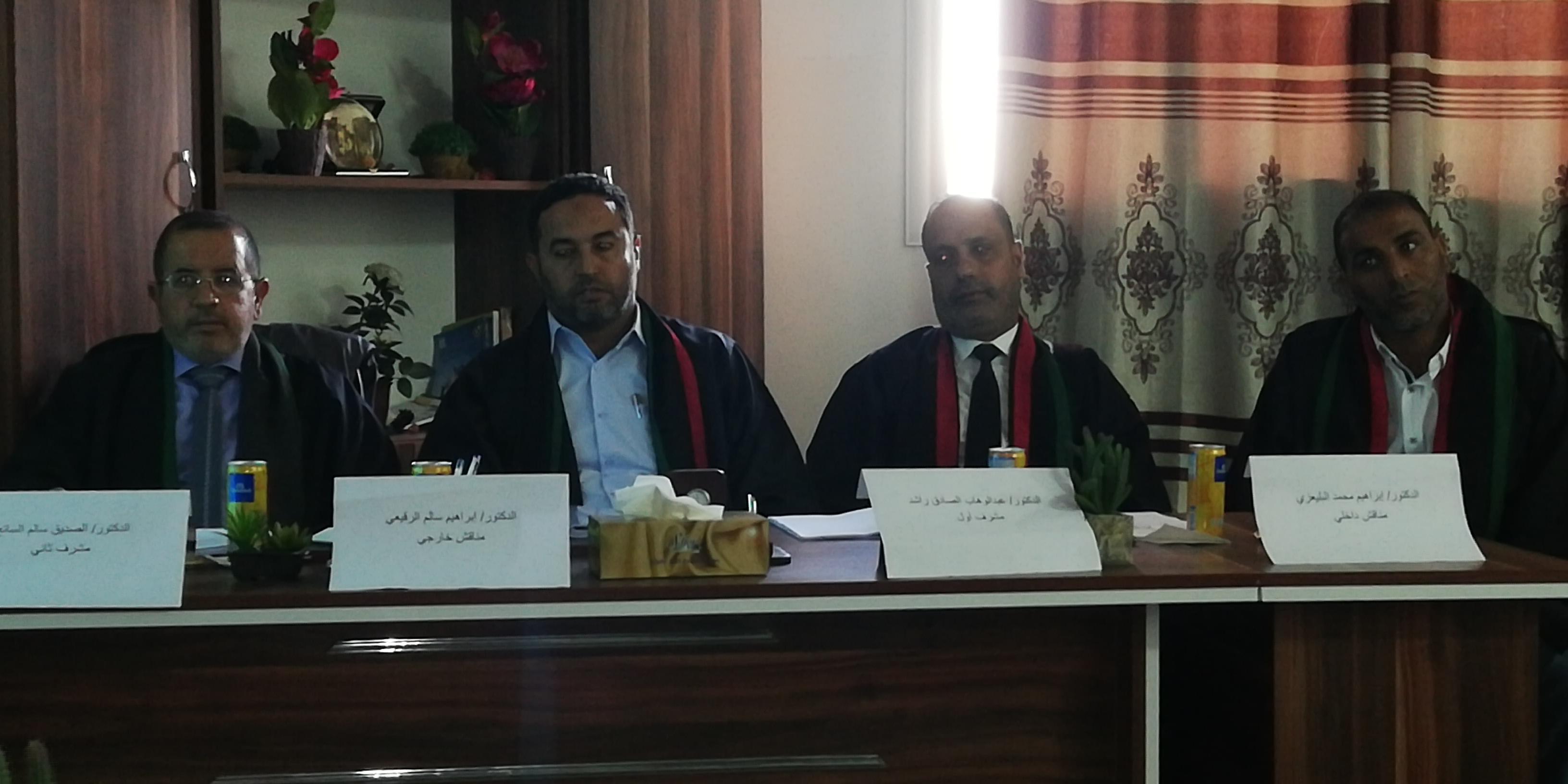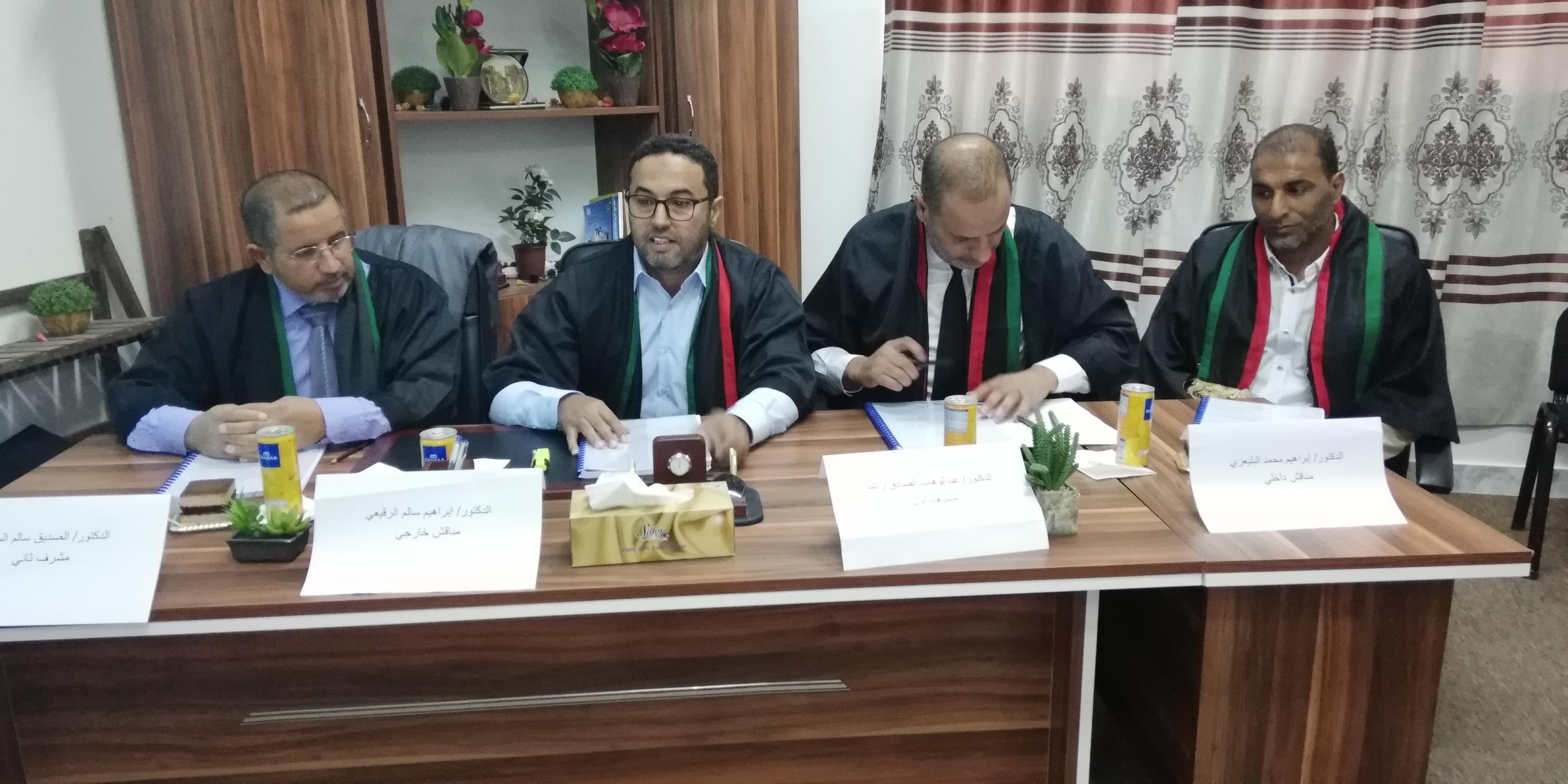 عُقد اليوم الأربعاء الموافق 27-11-2019م بكلية التربية البدنية وعلوم الرياضة جلسة علمية لمناقشة رسالة ماجستير بقسم التدريب الرياضي بعنوان تأثير البرنامج التدريبي المقترخ لتنمية القدرة العضلية وعلاقتها بنتيجة البدء في السباحة الحرة، وتكونت لجنة المناقشة والحُكم من كلاً من الدكتور عبدالوهاب الصادق راشد مشرفاً ومقرراً جامعة الزاوية و الدكتور. الصديق سالم السائح مشرفا جامعة الزاوية والدكتور إبراهيم زبراهيم سالم الرقيعي مناقشا جامعة طرابلس والدكتور إبراهيم ابوعجيلة البلعيزي مناقشا جامعة الزاوية. وتم قبول الرسالة بدون ملاحظات وتمنح اللجنة للدارس درجة الماجستير في التربية البدنية.