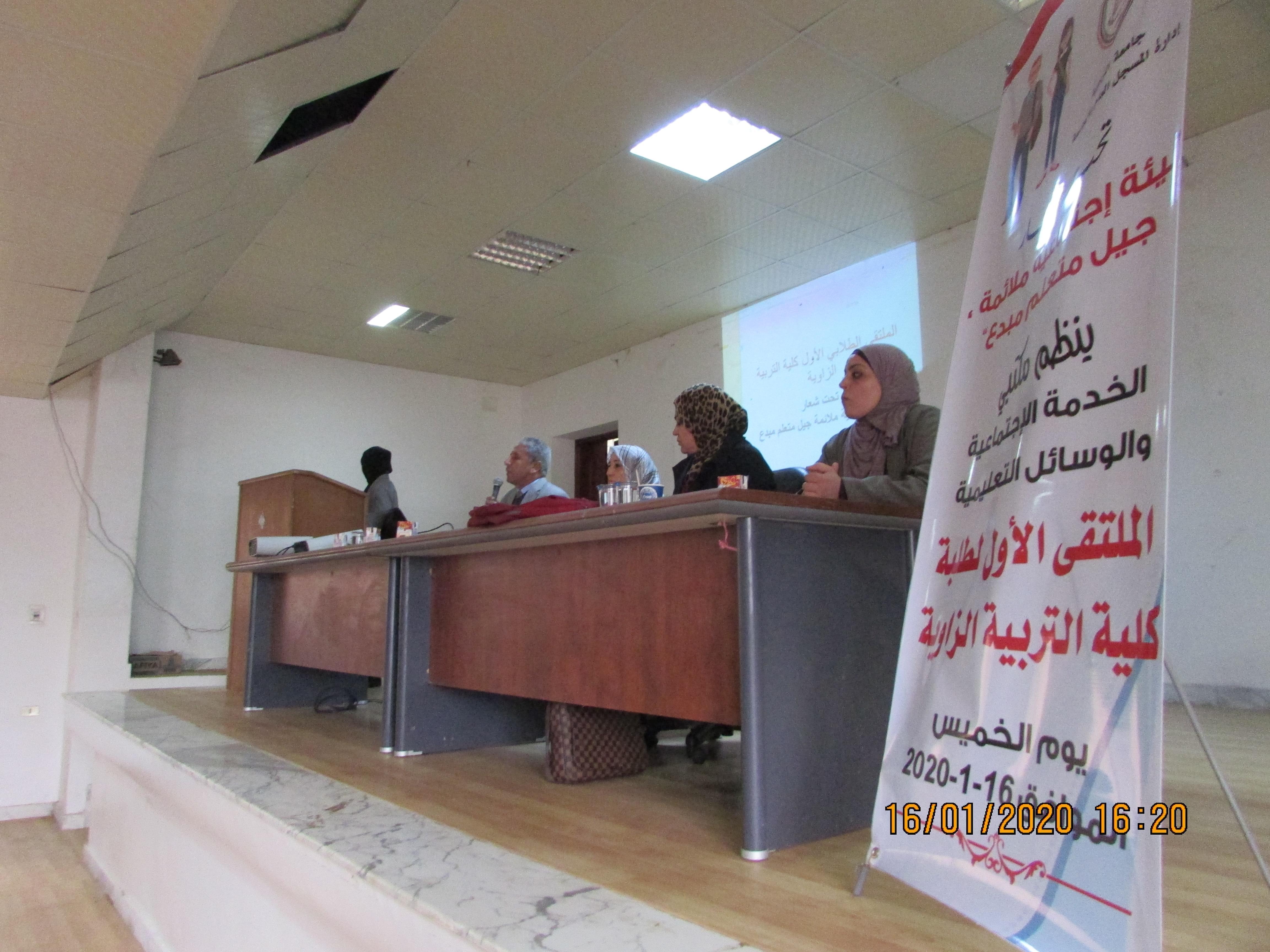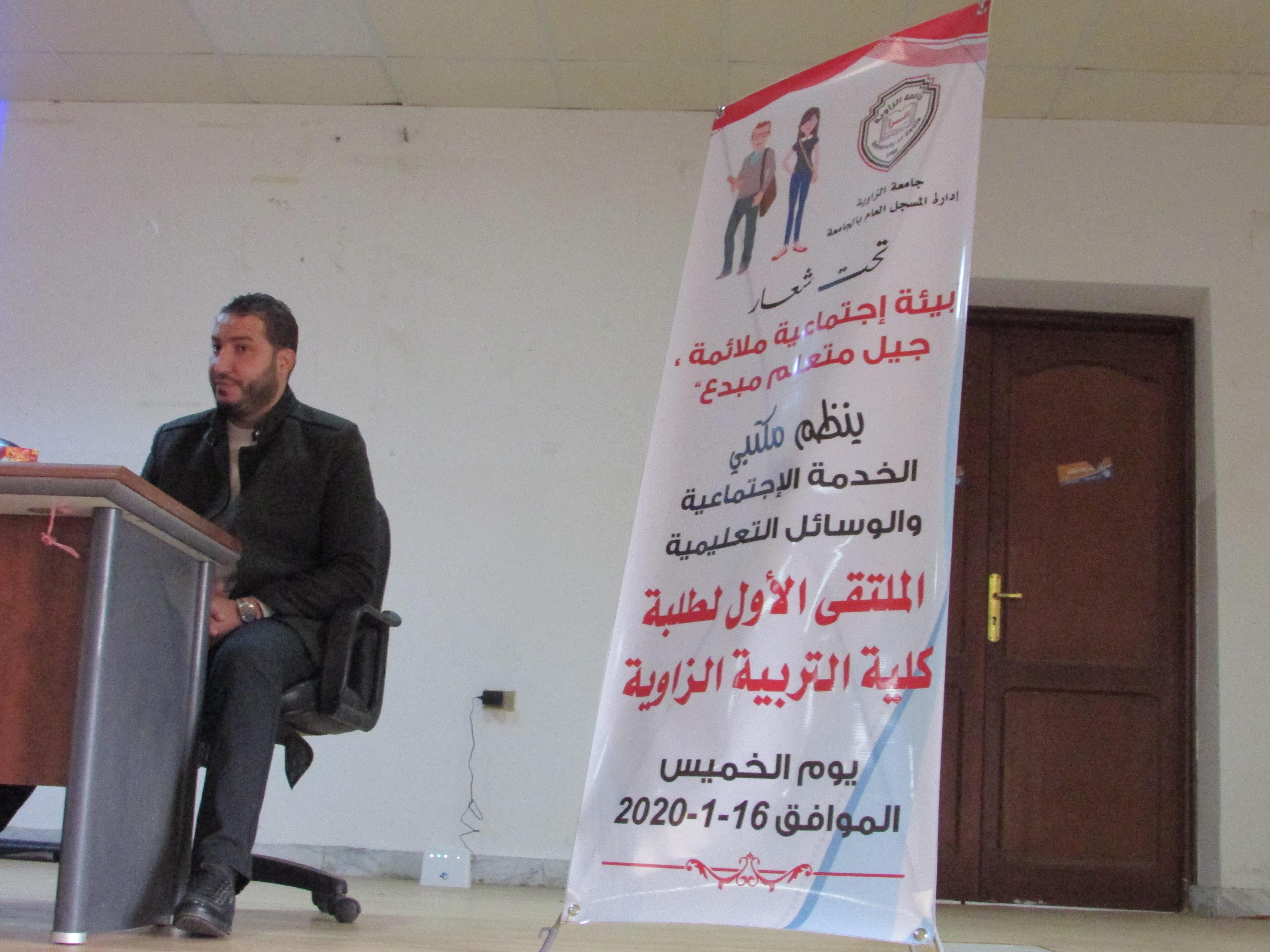 عقد اليوم الخميس الموافق 16-1-2020 الملتقي الأول لطلبة كلية التربية بالزاوية بحضور كلا من :