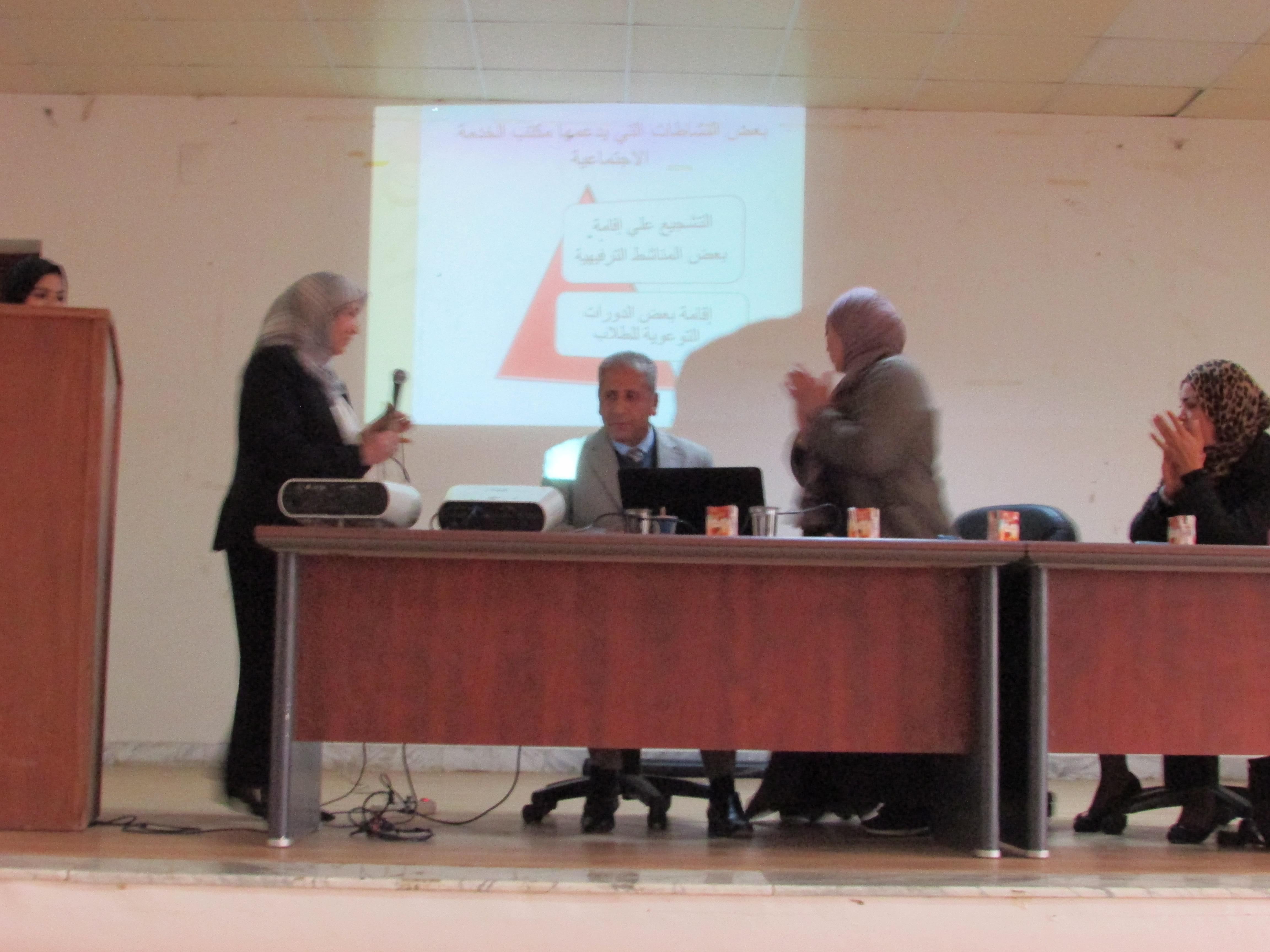 حيث أكد المشاركين في كلماتهم علي دور الجامعة و الكلية في بناء البيئة التعليمية الملائمة للطالب و كيفية مواجهة المشاكل و الصعاب و تذليلها أمامه. و تخلل الملتقي كلمات من أعضاء هيئة التدريس بالكلية و التي أكدت علي دور الخدمة الاجتماعية في اعداد المعلم المثقف الذي يسهم في بناء مجتمعه بفاعلية و من بين هذه الكلمات كلمة عميد الكلية د. خيري حمزة , د. نور الدين شقلابو رئيس قسم علم الاجتماع بالكلية , أ. ابراهيم الرتيمي مدير مكتب الجودة بالكلية ,أ موفق مسعود مدير مكتب المعلومات و التوثيق و الموقع الالكتروني بالكلية .