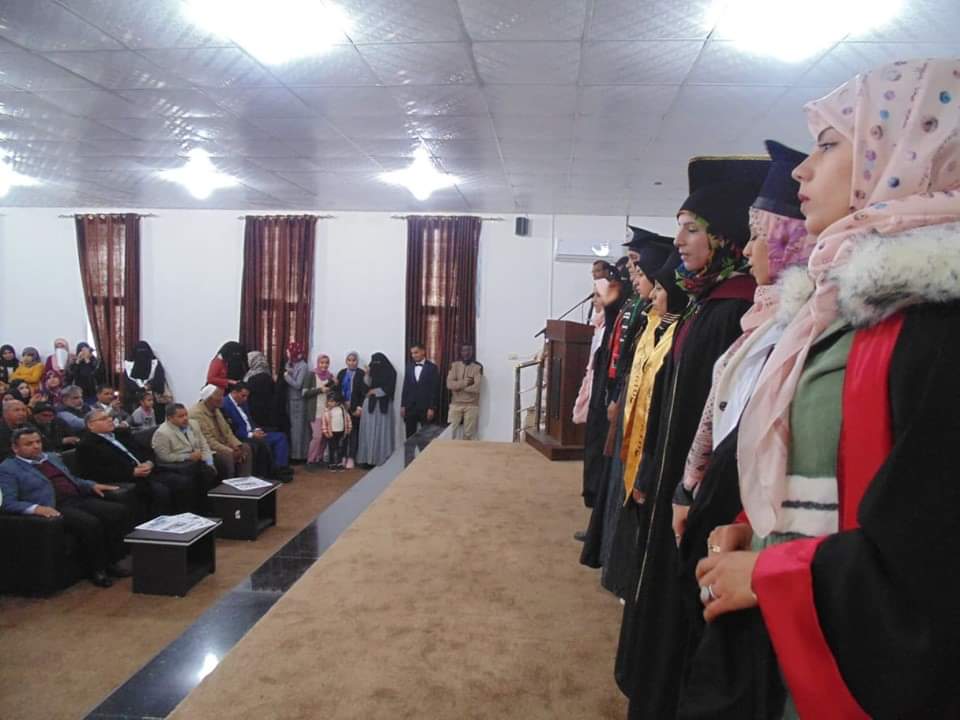 نظمت كلية التربية ناصر بجامعة الزاوية يوم الأربعاء الموافق 29 يناير 2020، بمسرح الكلية حفل تخرج الدفعة الثانية من الطلاب الدارسين بالكلية خلال العام الجامعي (2018-2019)، وقد شهد الحفل حضور أعضاء الهيئة التدريسية بالكلية، وعدد من الضيوف وأهالي الخريجين والطلاب الدارسين بالكلية، وخلال الحفل ألقيت العديد من الكلمات، وفي ختامه تم تكريم الناجحين الأوائل من الأقسام العلمية بالكلية