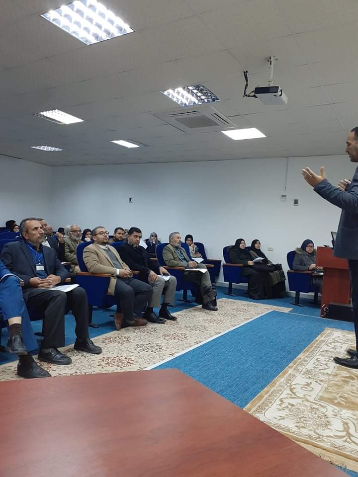 اقامت كلية التقنية الطبية ومركز البحوث والاستشارات العلمية بجامعة الزاوية صباح اليوم بقاعة مكتب التعاون الدولي ندوة علمية حول فيروس كورونا الجديد المنتشر في العديد من دول العالم تحت عنوان (فيروس كورونا مخاطر وتحديات) حضرها مدير إدارة الخدمات الصحية الزاوية ومدير وأعضاء مركز البحوث و الاستشارات بالجامعة وعميد ورؤساء الأقسام العلمية بكلية التقنية الطبية وعدد من عمداء الكليات وأعضاء هيئة التدريس والطلاب والمهتمين، وتم في هذه الندوة التركيز على المرض وخاصة أعراضه وطرق انتشاره وسبل الوقاية منه.