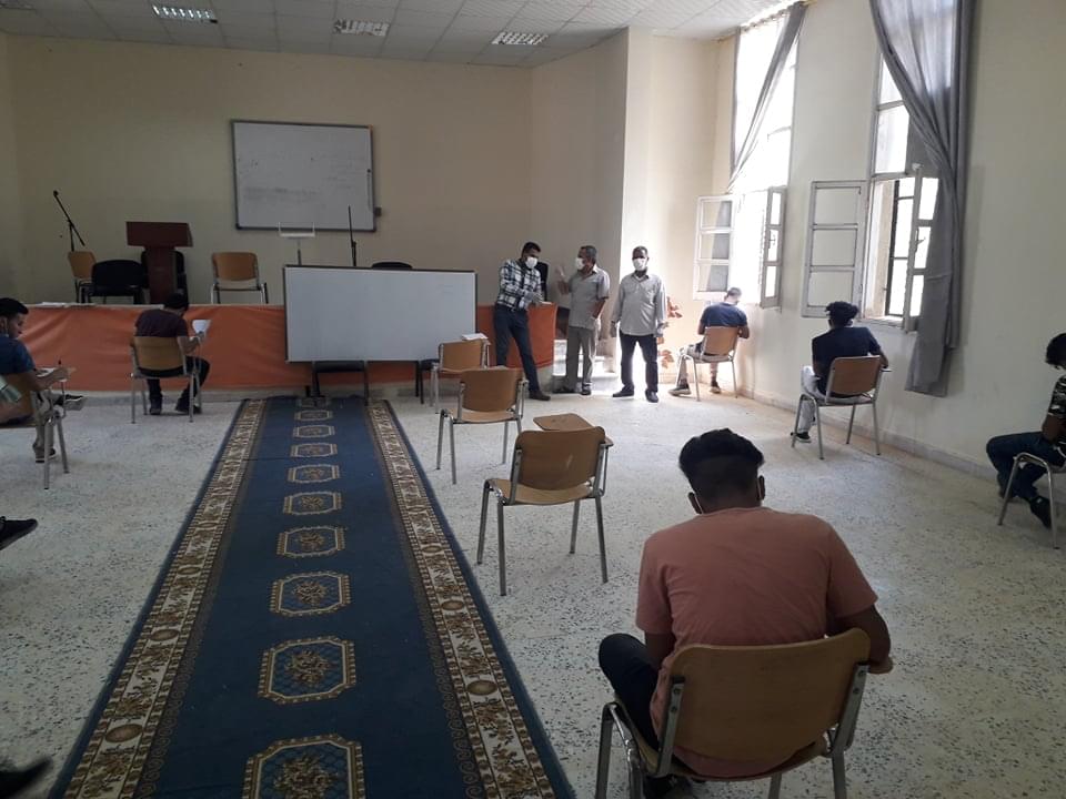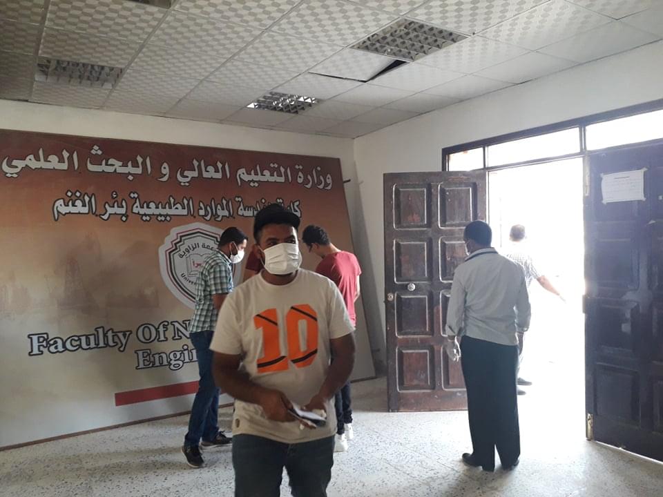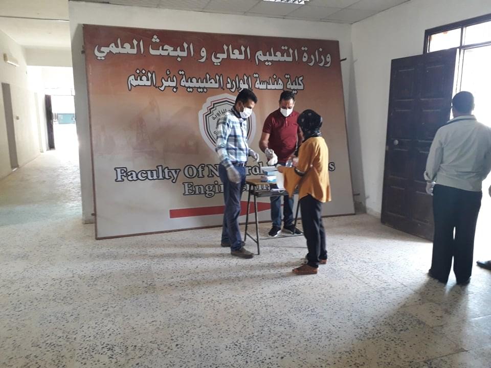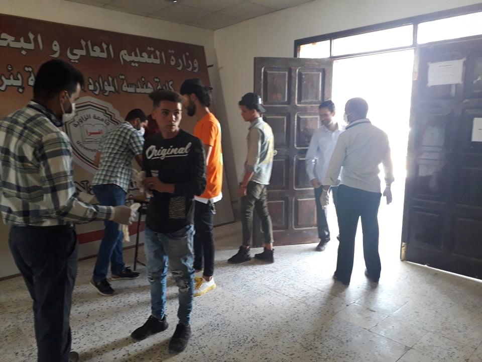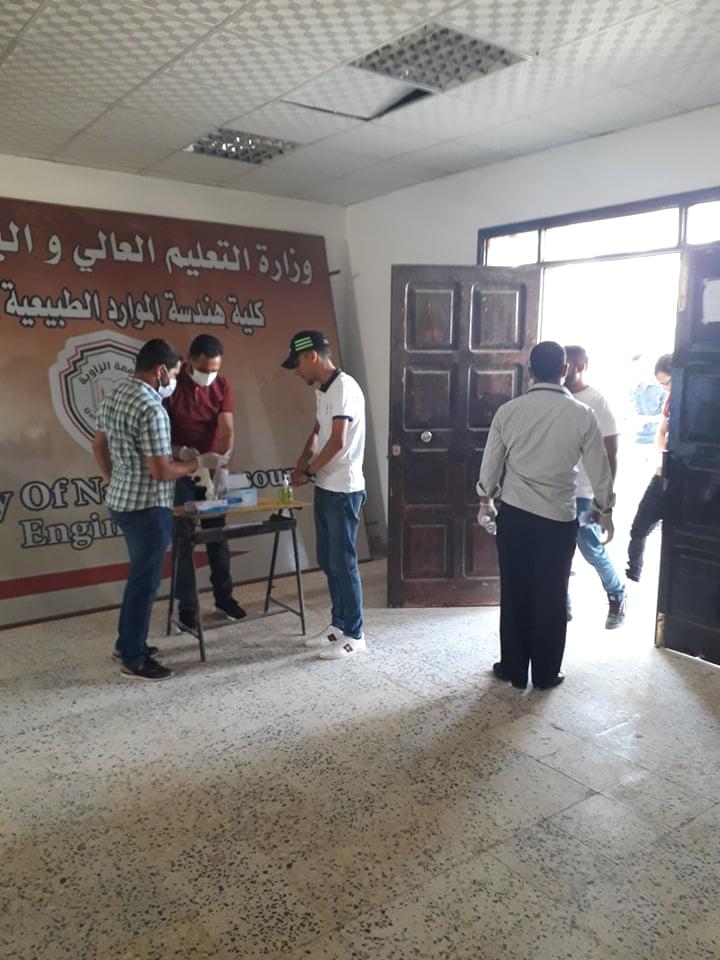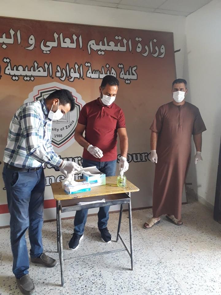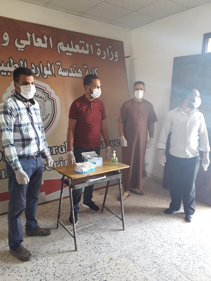 ورغم ان العدد قليل من طلبة وايضا الامتحانات المتبقية إلان أنه تم الاستعداد وبجدية وحرص شديد من قبل إدارة الكلية على سير الامتحانات وفق الشروط الصحية ووفق ما وصت به جمعية الهلال الاحمر الليبي من لبس كمامات وقفازات وترك مسافات آمنة بين الطلبة واستخدام المعقمات والمطهرات وغسل اليدين .