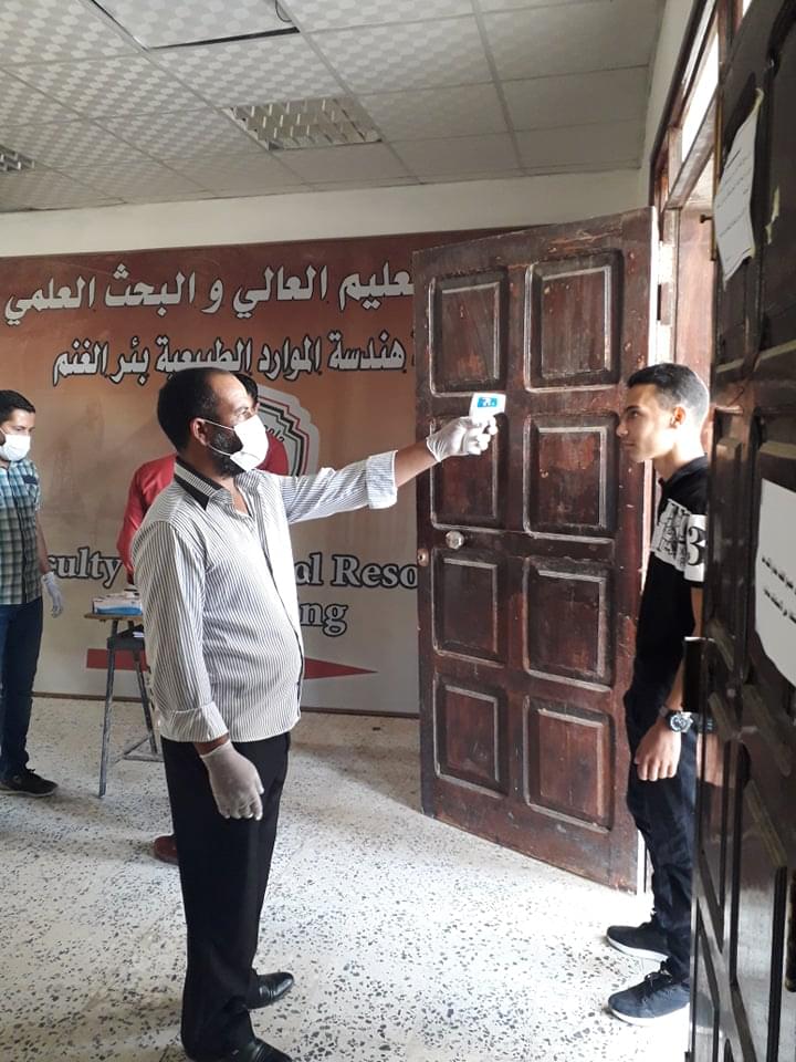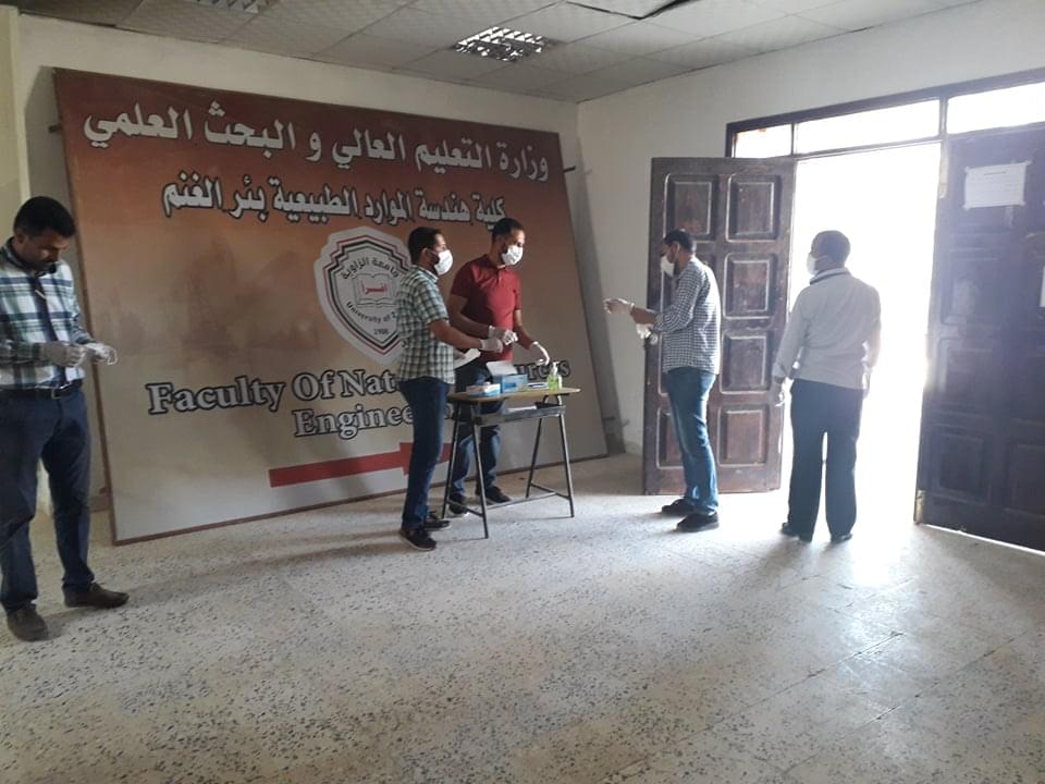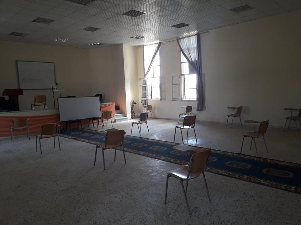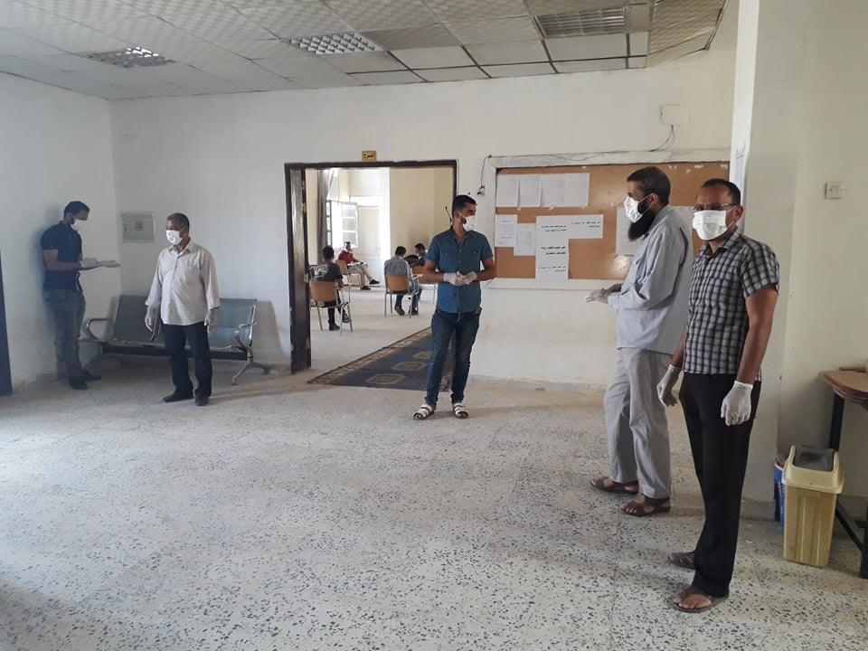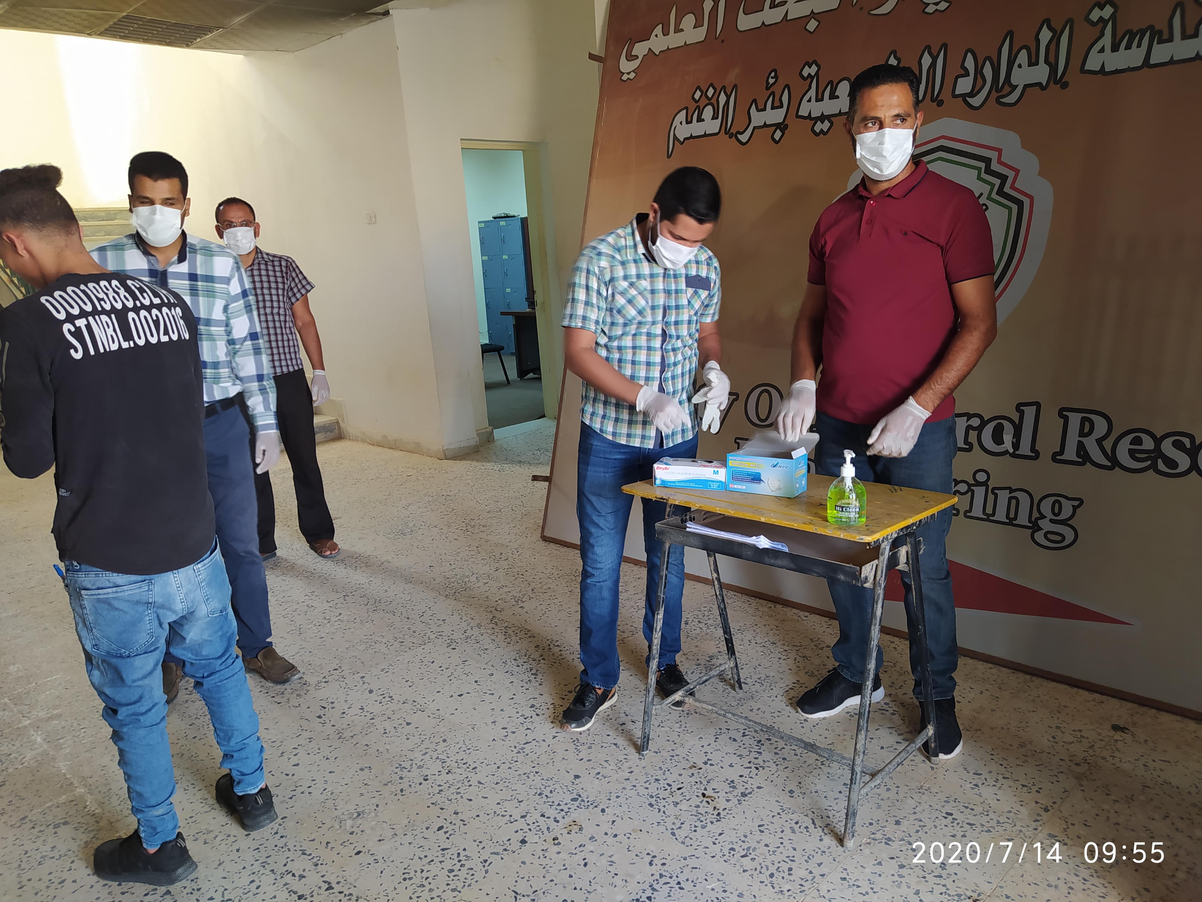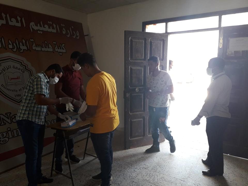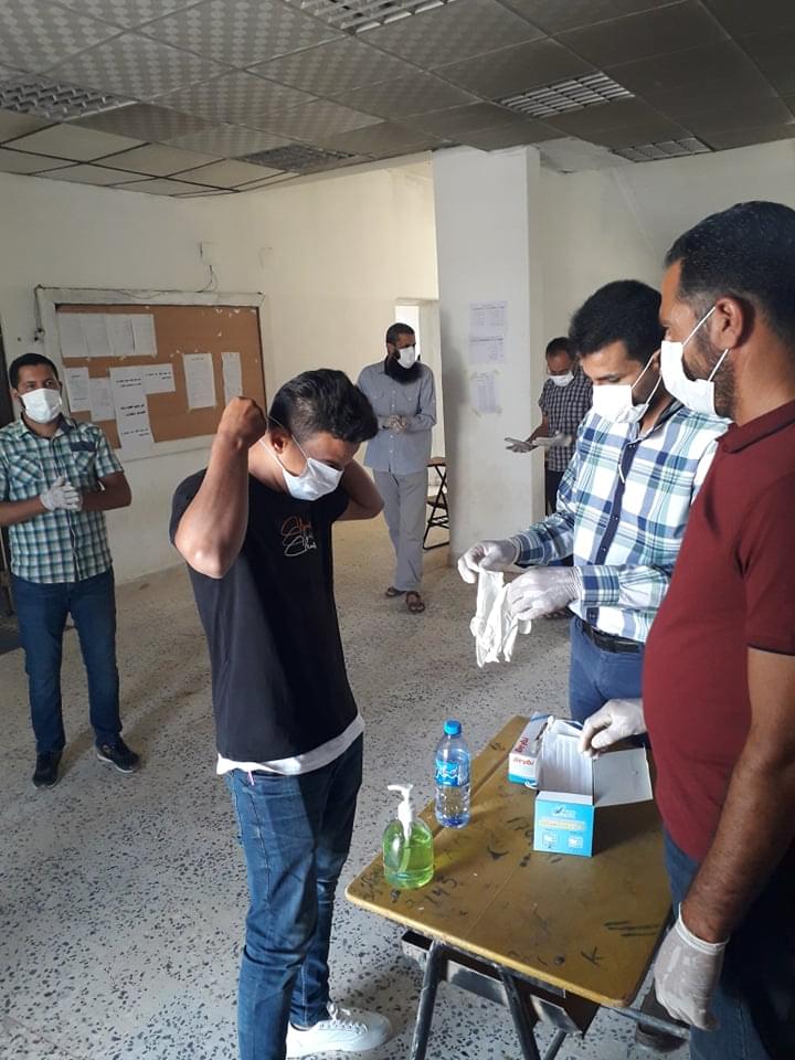 ورغم ان العدد قليل من طلبة وايضا الامتحانات المتبقية إلان أنه تم الاستعداد وبجدية وحرص شديد من قبل إدارة الكلية على سير الامتحانات وفق الشروط الصحية ووفق ما وصت به جمعية الهلال الاحمر الليبي من لبس كمامات وقفازات وترك مسافات آمنة بين الطلبة واستخدام المعقمات والمطهرات وغسل اليدين .