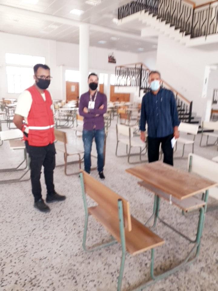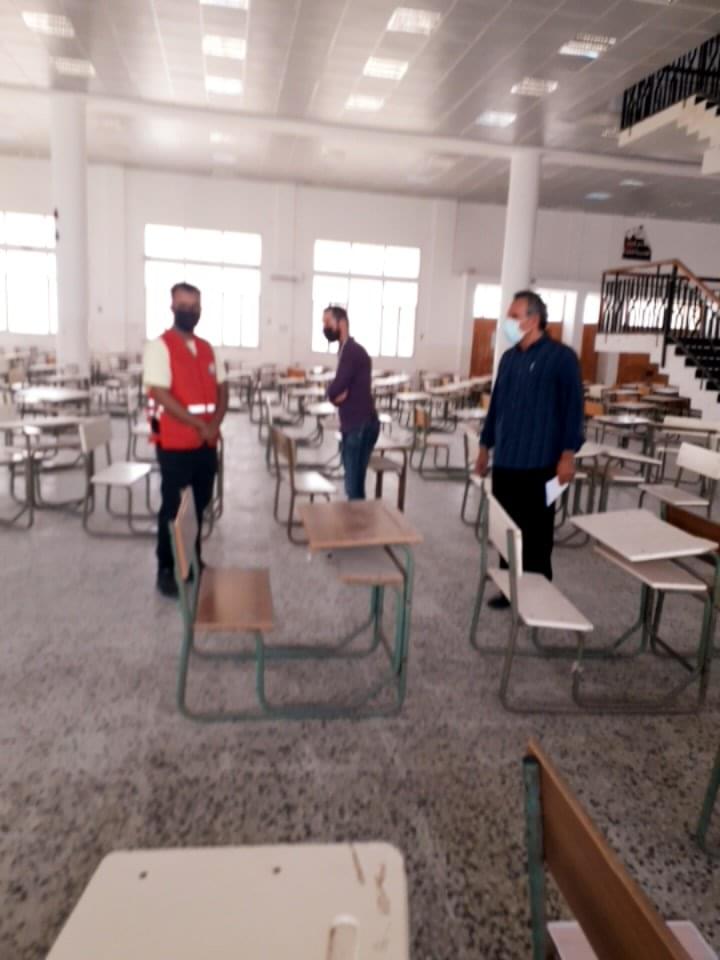 حيث اتفق الحاضرون على ضرورة تكثيف الجهود لتوفير بيئة أمنة لإستكمال الإمتحانات و ان يقوم شباب من الجمعية بالمساعدة في استقبال الطلبة والتوعية والاشراف على تعقيم قاعات الامتحانات. واثناء الزيارة قام الوفد بجولة داخل القاعات التي ستجراء بها الامتحانات.