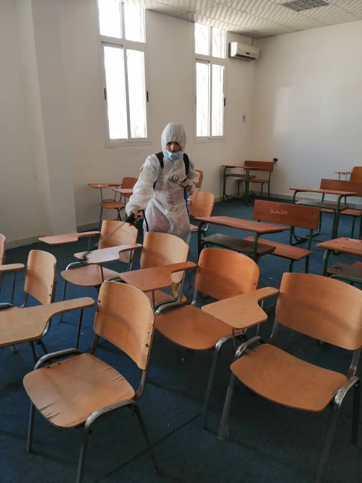 تتقدم ادارة كلية الطب البشري بالشكر الجزيل لجمعية الهلال الأحمر الليبي فرع الزاوية وذلك للجهود المبذولة في التعقيم داخل مبنى كلية الطب البشري جامعة الزاوية والمساهمة في الحد من انتشار فايروس كورونا .
