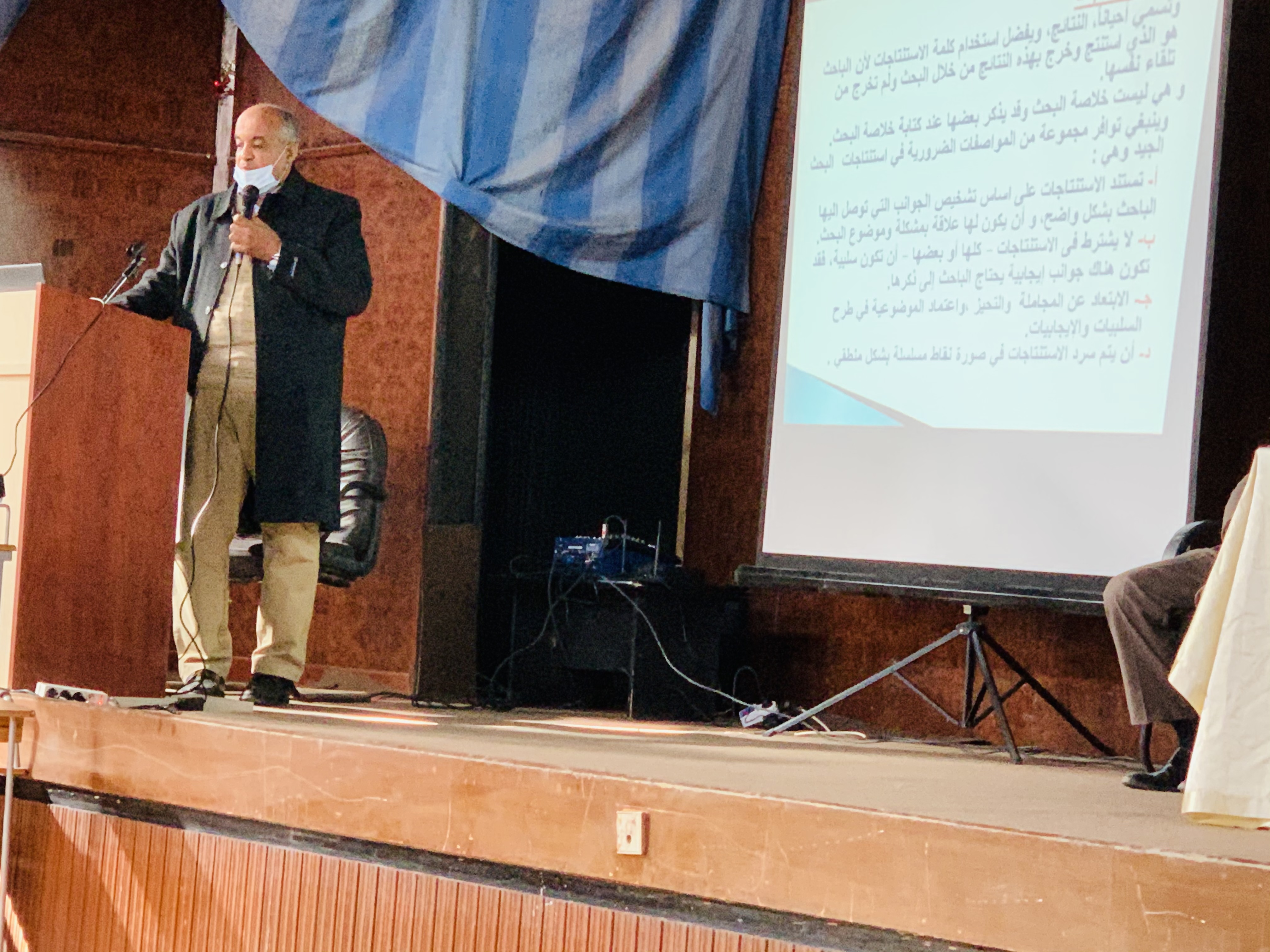 اقيمت يوم أمس الأربعاء الموافق 2021/01/13ندوة علمية حول اعداد و كتابة البحوث العلمية و التحليل الإحصائي و التعليق علي النتائج بمسرح كلية العلوم بالعجيلات . و بداء برنامج الندوة بتلاوة آيات من القرآن الكريم فكلمة اللجنة التحضيرية من قبل الأستاذة منيرة القريدي حيث رحبت بالضيوف الكرام واعطت نبذة مختصرة عن أهمية الندوة واهدافها ، و كلمة عميد الكلية حيث رحب بالحاضرين من أعضاء هيئة التدريس، و طلبة الدراسات العليا و المعيدين بالجامعات . و قسمت محاور الندوة الي ثلاثة محاور حيث قدم المحور الأول د. محمد الباشا حول إعداد و كتابة البحوث العلمية باللغة العربية ، و قدم المحور الثاني د. الأنصاري الخولي حول كتابة البحوث ( الورقات العلمية) باللغة الانجليزية، وقدم المحور الثالث الأستاذ المبروك الحريريق حول التحليل الإحصائي و التعليق علي نتائج البحث. ثم فتح باب المناقشة للحضور. و أختم برنامج الندوة العلمية بتوزيع شهادة الشكر و التقدير و التي أهمها شهادة الشكر و التقدير لرئيس المجلس التسييري لبلدية العجيلات، إذاعة العجيلات المحلية، المحاضرين، و أعضاء هيئة التدريس بالجامعات الاخري الحاضرين و اللجنة التحضيرية للندوة.و ختم البرنامج بجو يسود الرضا و الارتياح للحضور .