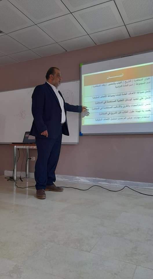 مشاركة كلية التربية الزاوية في فعاليات الدورة التدريبية التي نظمها مكتب التفتيش التربوي بمراقبة تعليم الزاوية تحت عنوان (المتابعات اليومية لعضو هيئة التدريس من قبل التفتيش التربوي) حيث شارك في إعداد هذا البرنامج التدريبي الأستاذ عبد الرزاق البشير قدارة أحد اعضاء هيئة التدريس بقسم التربية وعلم النفس بالكلية وذلك ضمن البرامج الخدمية التي تقدمها الكلية للمجتمع المحلي في إطار رؤيتها ورسالتها وأهدافها التربوية.