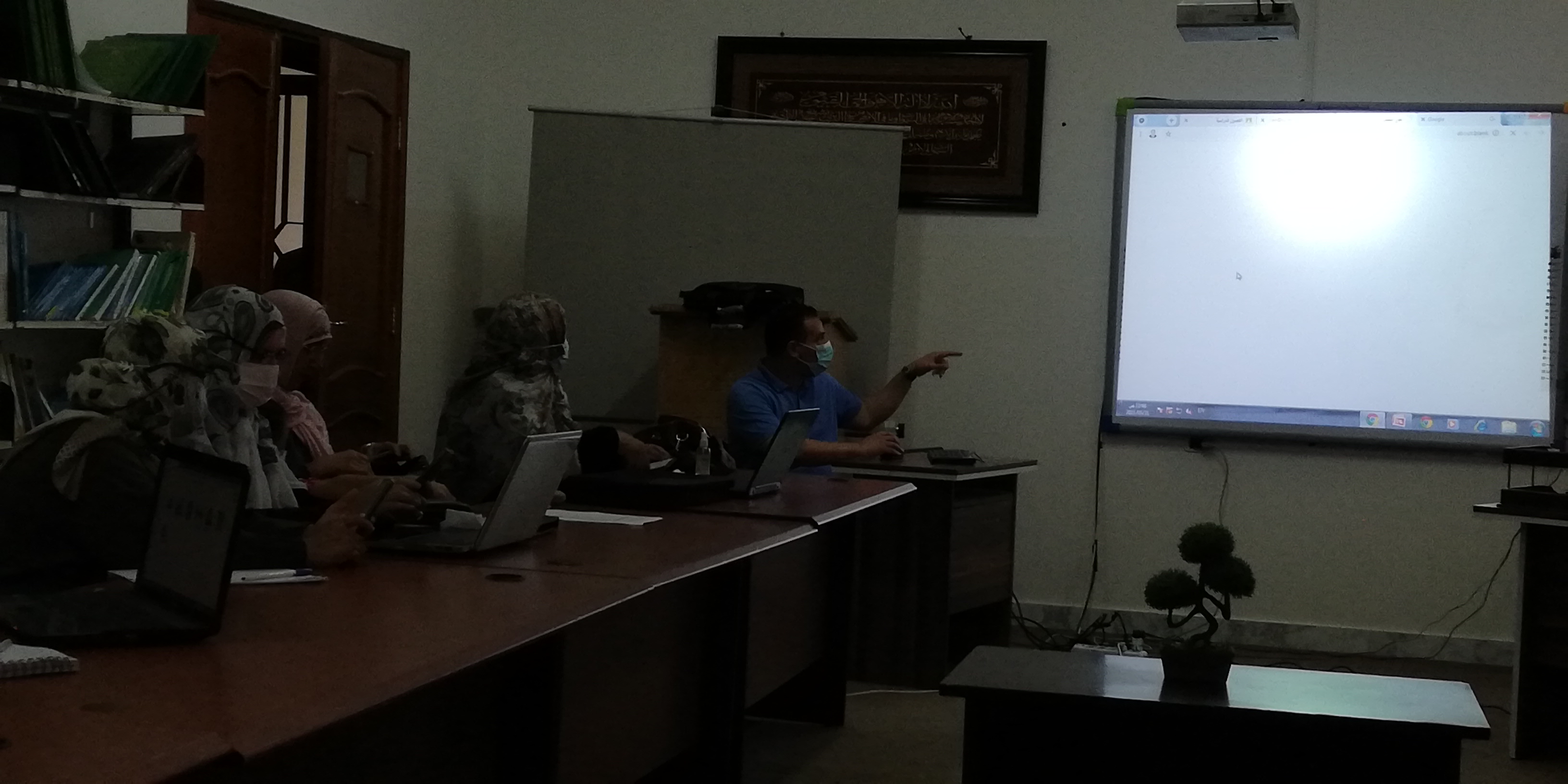 في إطار خطة عمل مكتب الإستشارات العلمية والبحوث تم اليوم بكلية التربية البدنية وعلوم الرياضة إقامة ورشة عمل في كيفية خلق تواصل فعال بين الأستاذ والطالب وتطرق الدكتور زياد سويدان إلى كيفية فتح فصول دراسية إفتراضية واستخدامها للتواصل مع الطلاب واستخدامها كبديل للحضور لقاعات الدرس بالكلية خاصة في ظل التحوطات التي تأخذها الجامعة للحد من إنتشار وباء كورونا.