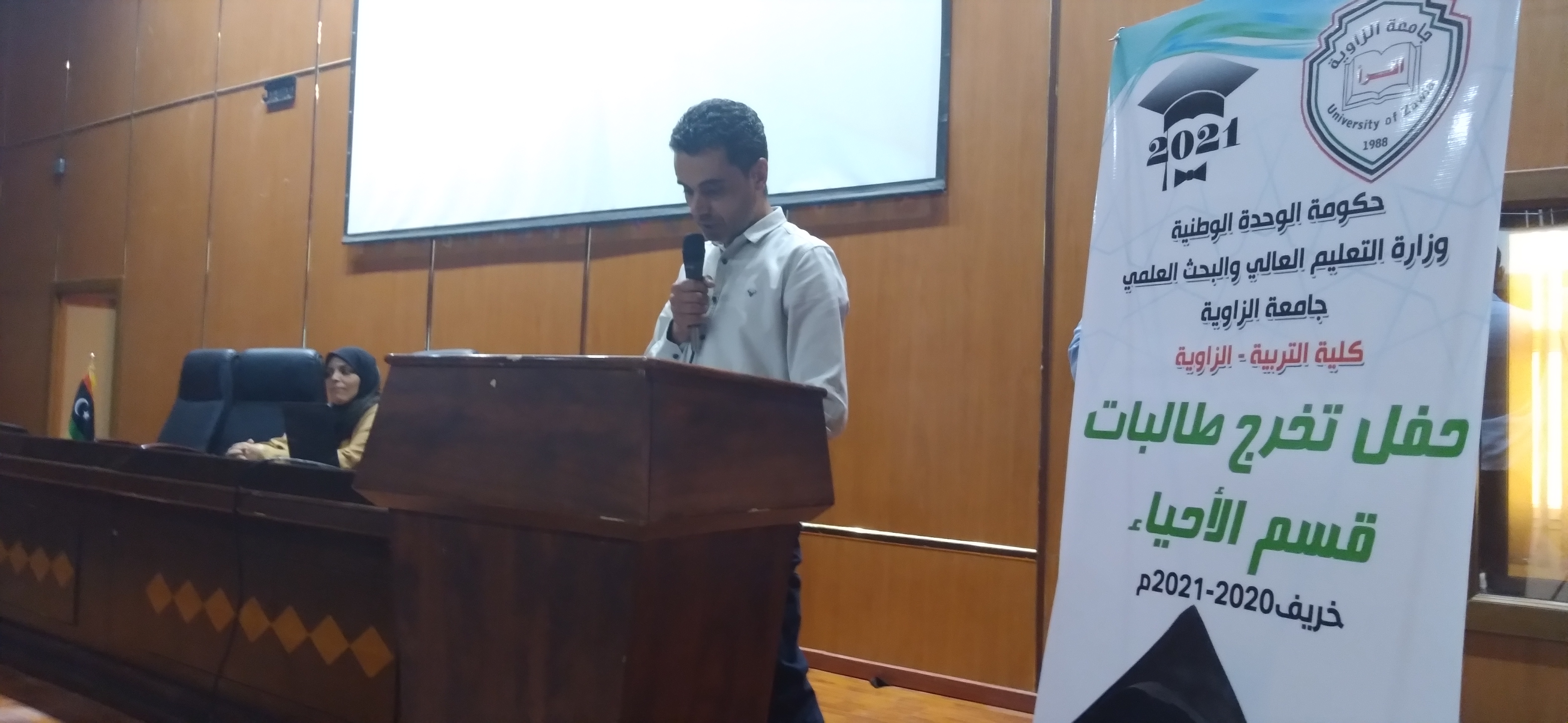 في أجواء رائعة يسودها الفرح والسرور نظّم قسم الأحياء بكلية التربية بجامعة الزاوية صباح اليوم السبت الموافق 19-6-2021م. ببيت الثقافة الزاوية حفل تخرج دفعة عام 2020-2021م. وكانت الاحتفالية بحضور عدد من الضيوف الكرام وأولياء أمور الطالبات الخريجات.