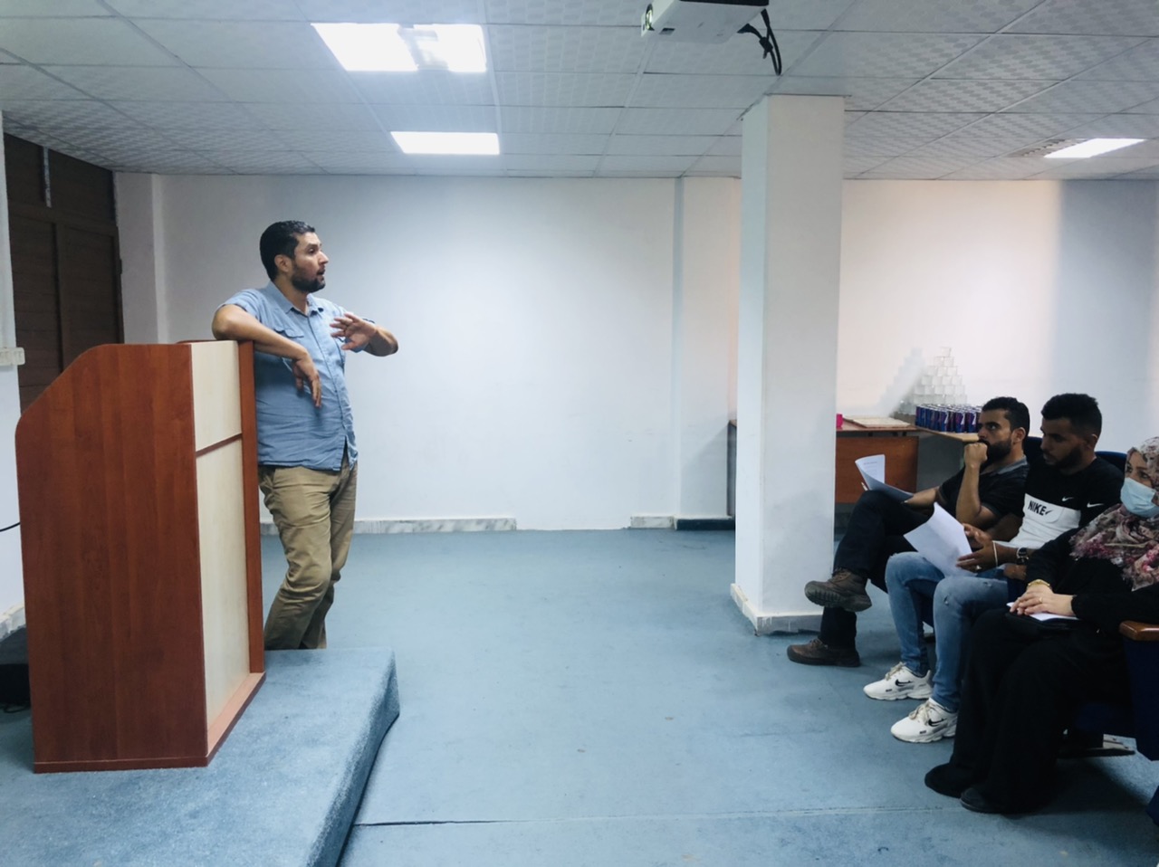 وذلك في حضور كلاً من عميد الكلية د. محمد رحومة وأعضاء هيئة التدريس د. صبحية شقلابو ، د. علي ميلاد ،د نجاة منصور ، د. إيهاب المقرحي وبحضور ضيوف من خارج الكلية أ. محمد مصطفى رئيس الإتحاد العام لطلبة جامعة الزاوية ود. إبراهيم التومي ود. حسن البرناوي مسجل كلية التربية الزاوية