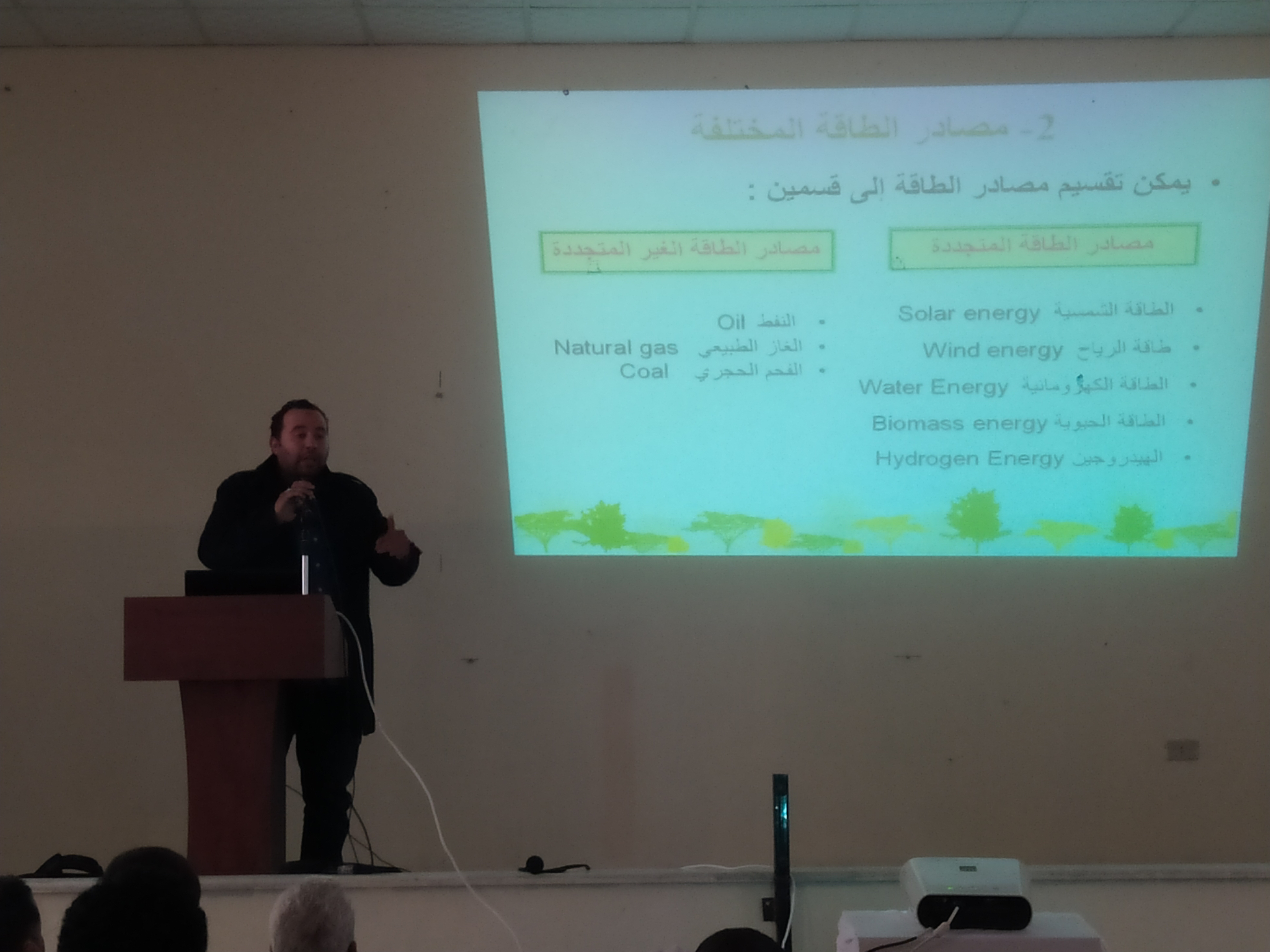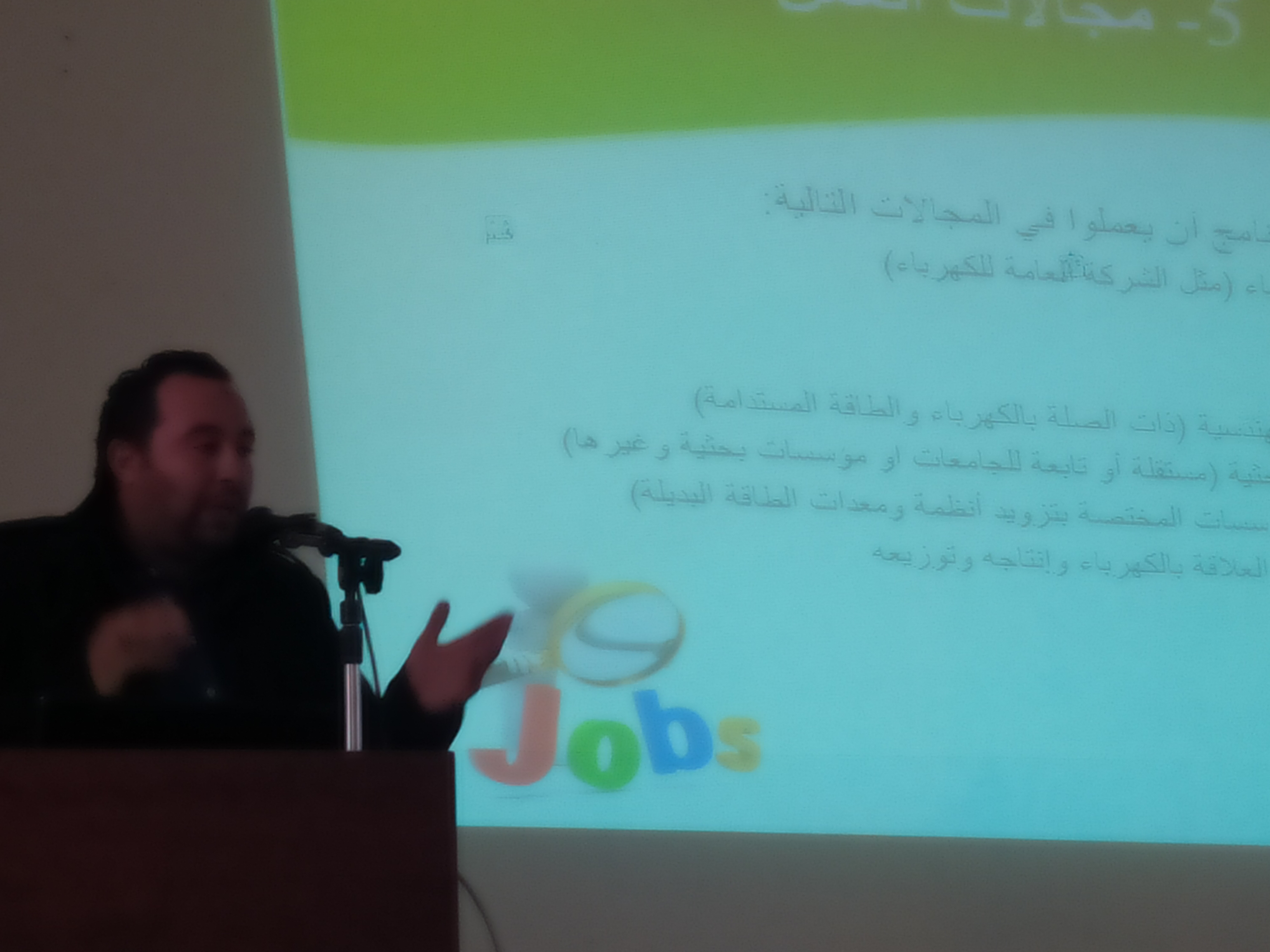 ثم تلى ذلك تعريف بالاقسام العلمية بالكلية و مايدرسه الجالب خلالها. حيث قام ا.مجدي خلف الله بالتعريف عن قسم هندسة النفط. ثم ا.مروان المشكوي عن قسم هندسة الطاقات المتجددة و ا.خيري خلف الله عن قسم الادارة الهندسية ود.صلاح ابوخذير عن قسم هندسة البيئة.