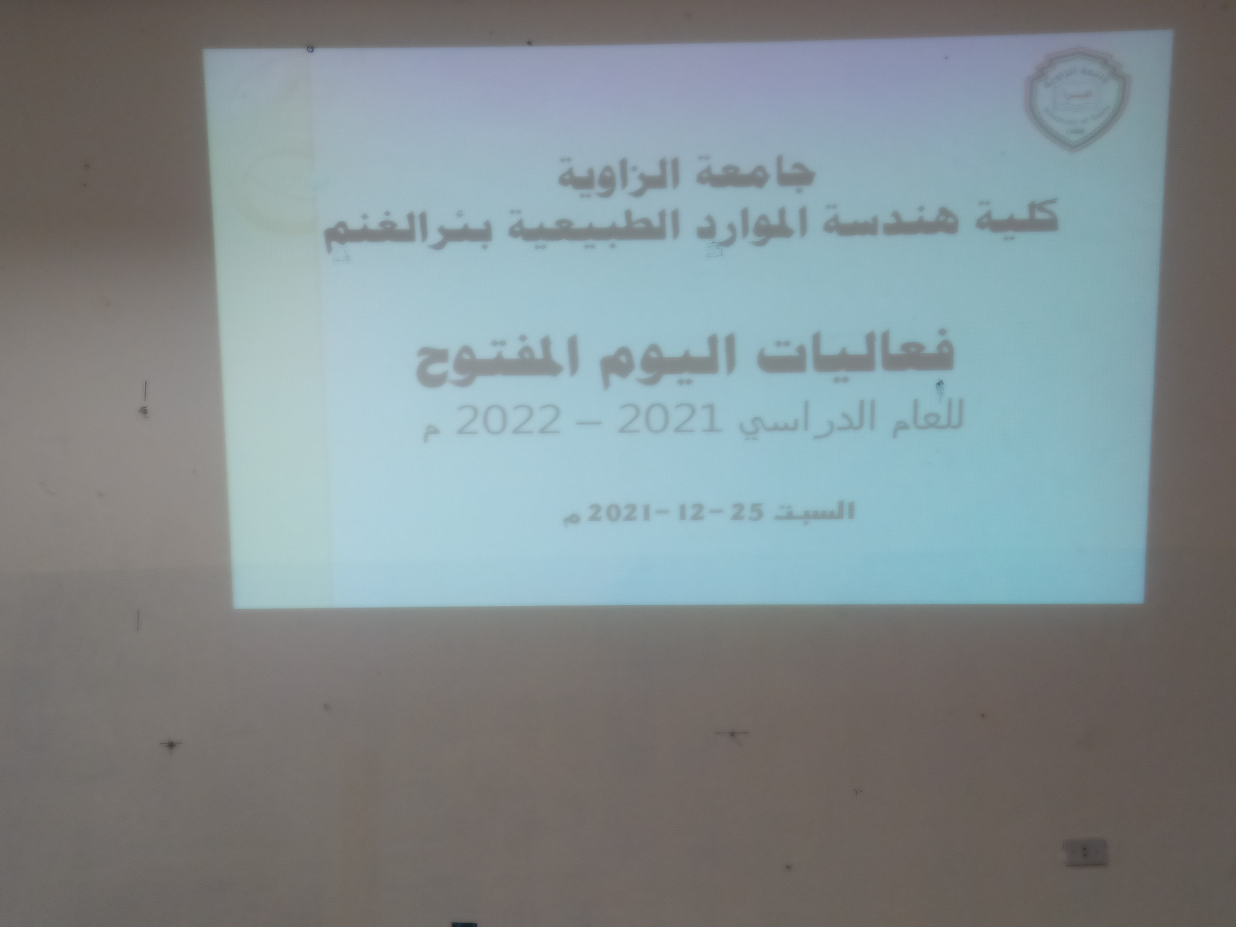 في مقدمة الحضور عميد الكلية د.محمد جلبوب واعضاء هيئة التدريس وموظفي الكلية والطلبة. كما حضر ايضا ممثل عن بلدية الزاوية الجنوب المهندس صالح المفطوم .